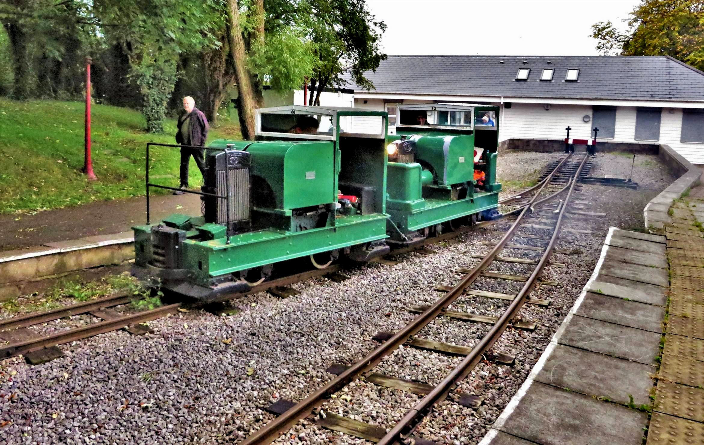 Simplex locos '43' & '44' at the end of line headshunt at Page's Park.