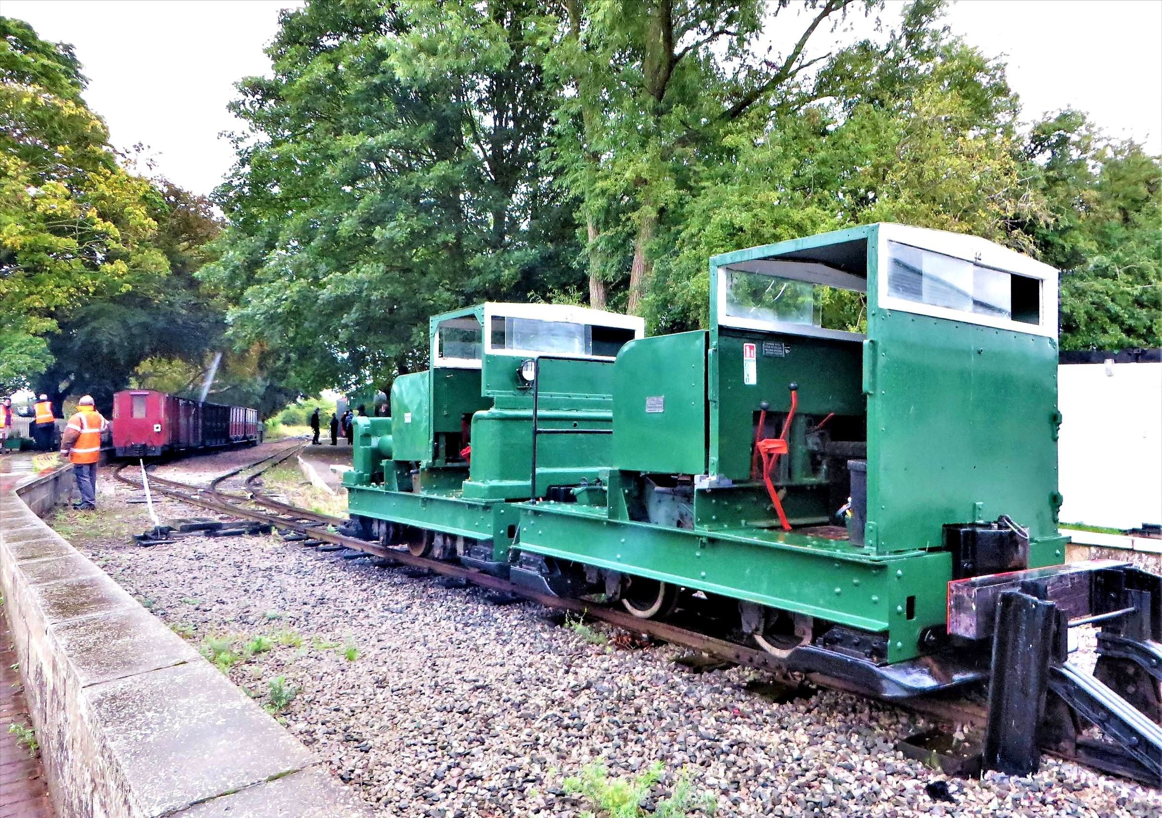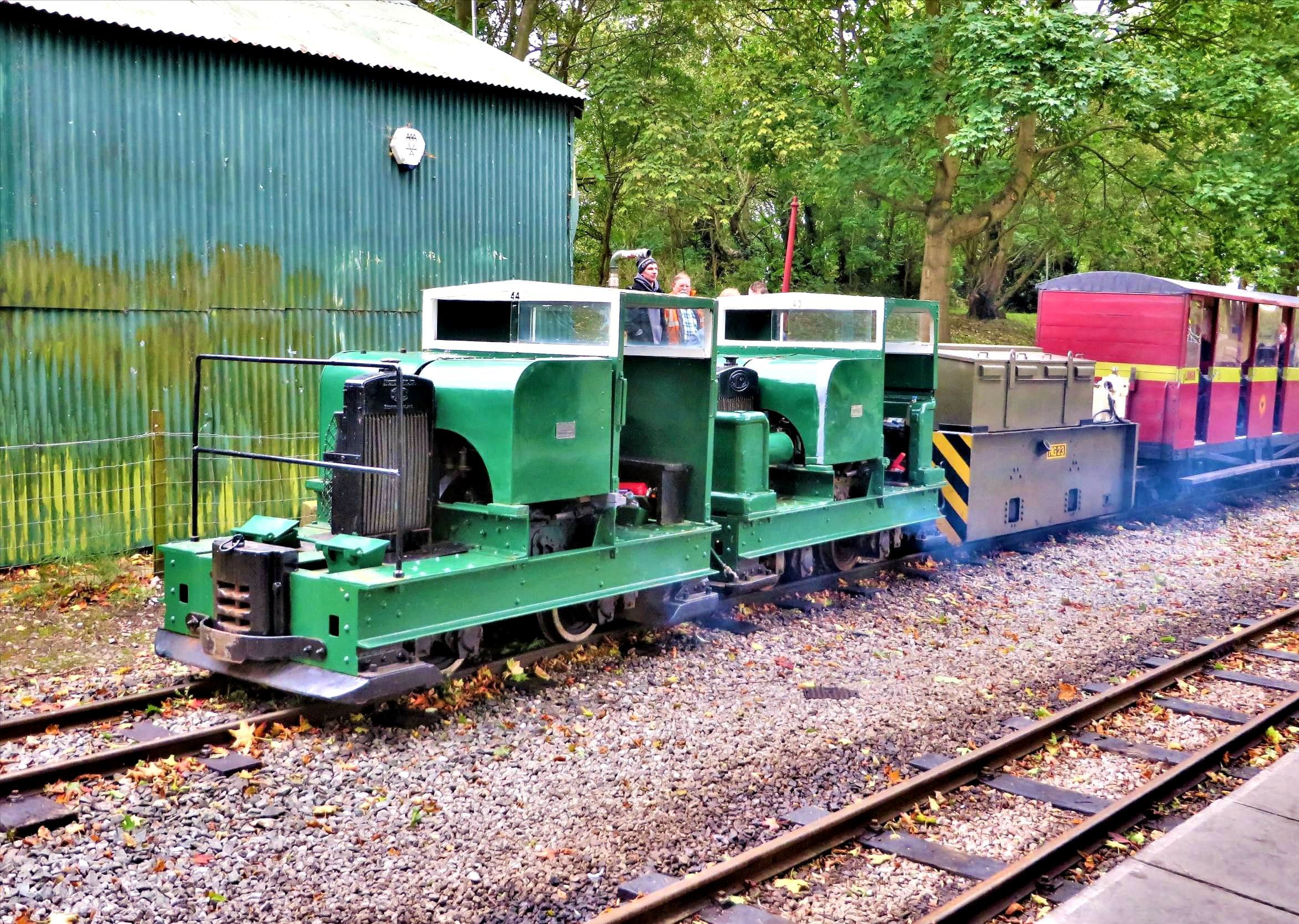 I was the first to arrive at Page's Park and was impressed by the new station building opened in 2017. A LBR volunteer was keen to invite us in to browse the vast collection of second hand books for sale (and all of the new ones about the railway), gifts and other memorabilia. Browsing over for now, I watched Simplex locos '43' & '44' manoeuvring around the stock for our train. Making plenty of smoke they positioned themselves at the north end of the train, with battery-electric NG23 coupled inside.