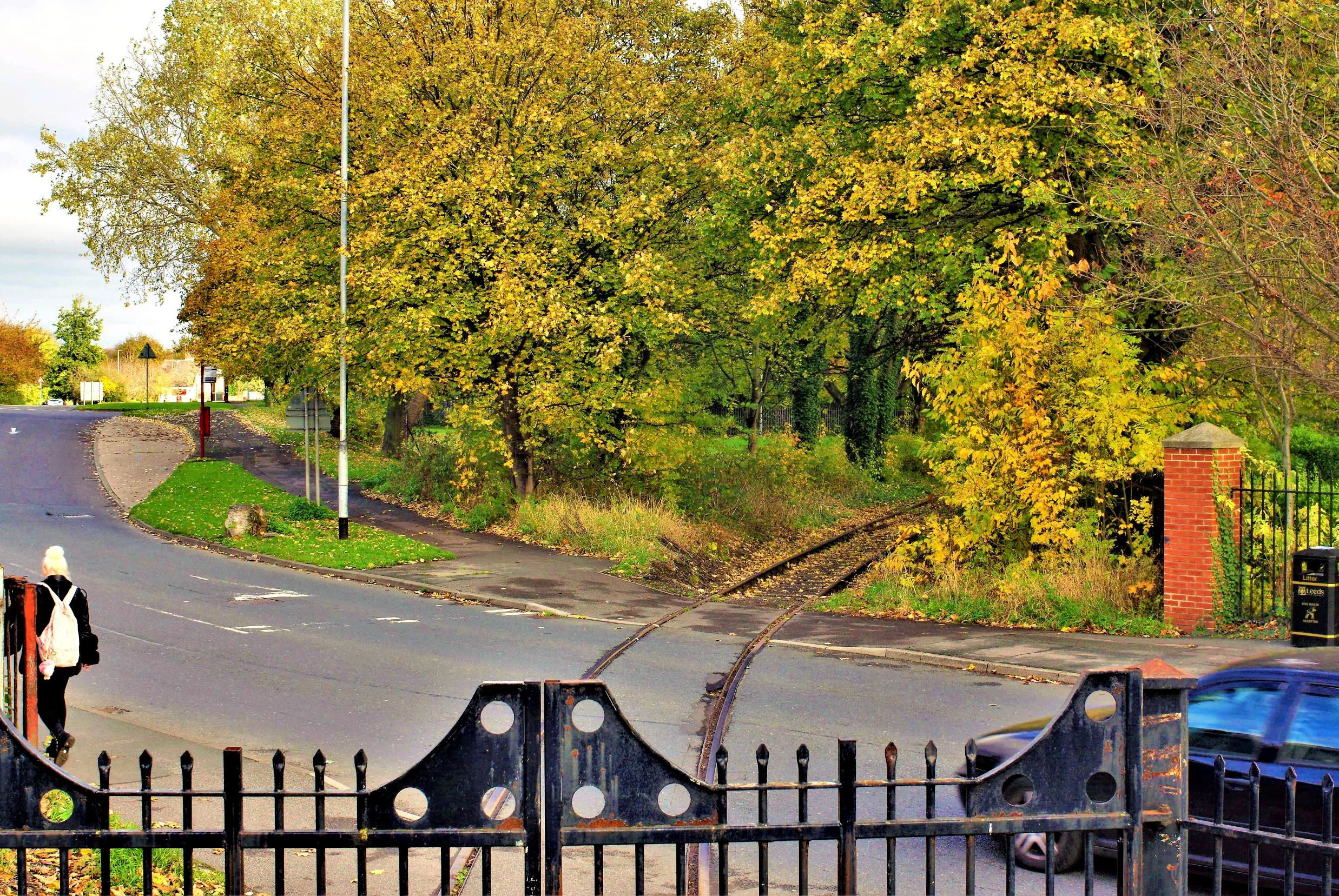 The aim was to do as much track as possible at Moor Road but, unfortunately, due to a recent track defect, which could not be repaired in time, it was not possible to cross Moor Road Level Crossing and continue eastwards to the end of the Balm Road Branch. Here the line connects with NR, although the connection, still shown on the Sectional Appendix, has been bolted out of use for about thirty years. Stabled stock then had to be moved out of the way (and returned) in carefully choreographed moves by both locos. The line from the platform to the level crossing was blocked by goods wagons, so No45 moved them via the run-round loop to the running line south of the platform. With everyone aboard, at 11.27 Carroll propelled our train north from the platform, round the gentle curve to the crossing. There are two sets of gates, just a few feet apart, controlling access to the railway rather than closing the road. The first are part of the palisade security fencing round this site; the second are painted metal gates which match the older (lower) boundary fencing round the car park. The metal posts for the proper (metal) level crossing gates are extant on the west side of the road, as is the gate which at one time closed the road on the northern side of the line. However, it can no longer be moved, as it is partly buried in the pavement tarmac. When trains use the crossing two flagmen stop the road traffic.