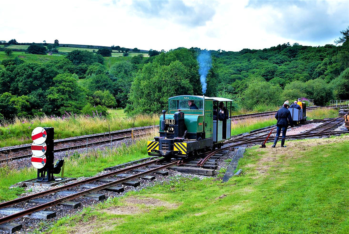 Originally due to take place on Sat 6 Mar 2021 but put back because of Covid considerations, this visit by the Society finally took place as indicated above. There were 21 participants leaving just over 40 on a waiting list! Most arrived by car but four used the Esk Valley service travelling from Middlesbrough or in one case Battersby (a required station obviously!). The 14 minute wait there before reversal allowed inspection of the antiquated equipment still in use to control movements to and from each line. Arrival at Castleton Moor station (1,258 passengers 2020-21 and 5,014 the year before) at 11.47 was followed by a short walk to the gates of the Railways where the rest of the party were present.