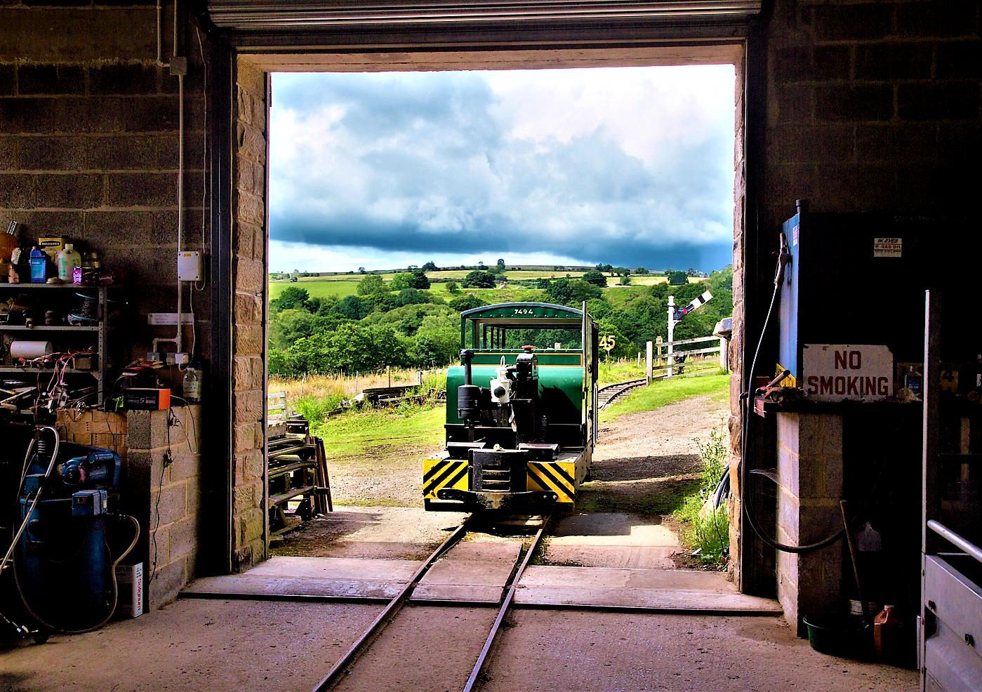 A visit was then made to the stone built depot/workshop in front of which stood Alne MR7494/40 rebuilt in 1991 at BREL York. The depot contained three locos MR7333/38, Deutz 47414/51 & Irthing MR8655/41. Upon leaving the shed it was observed that 'Alne' was being started and it eventually ran to nearly the end of the siding and then back to the start of the system. By now members were completing their required track and haulage, and most of the group had congregated at the entrance.