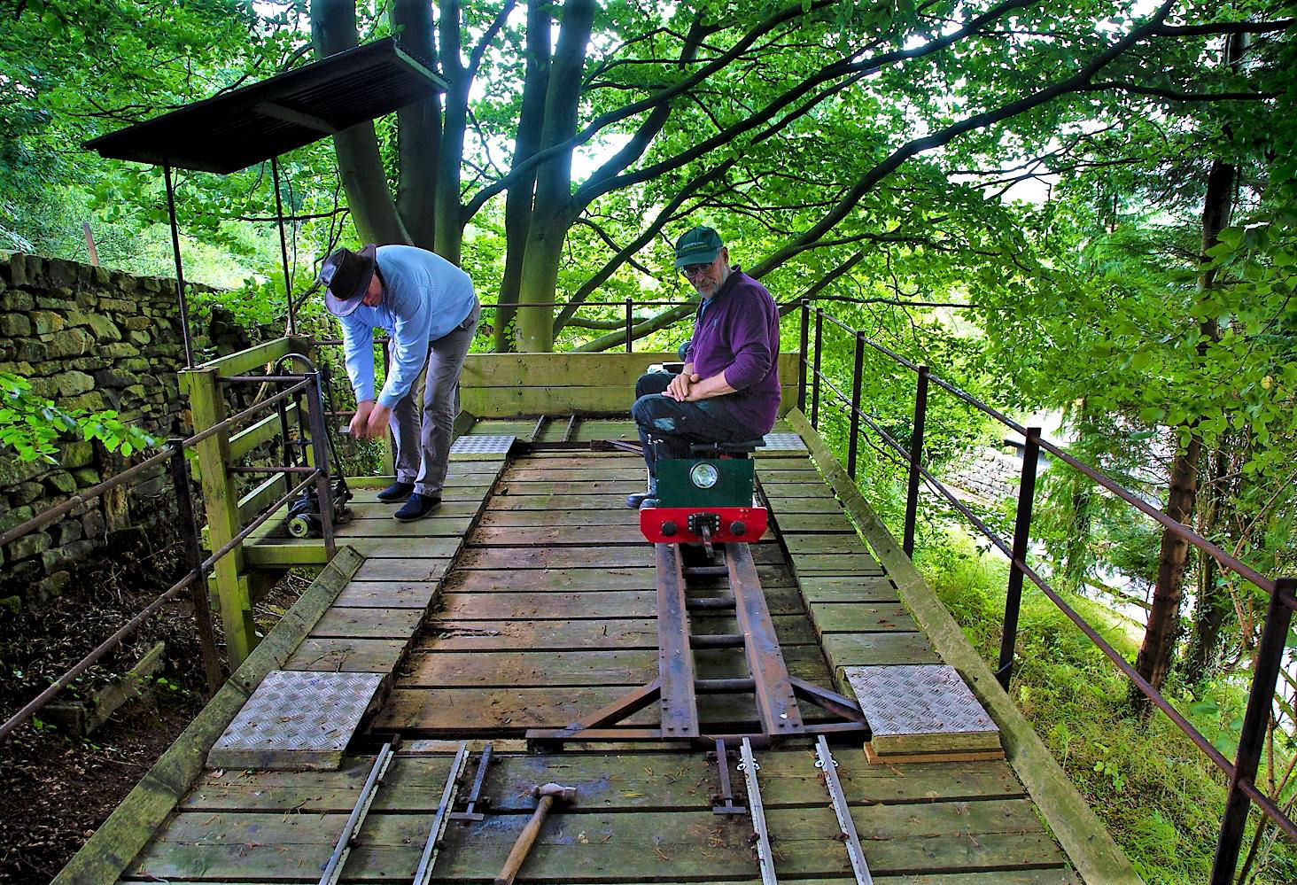 On to the wet 7¼" tracks and any worries about possible slippage on this system, which rises from each end to a slight hump, were dispelled by the good performance of the two 4wPMs Gardner and Planet both of unknown parentage and age plus a Bo-BoE (Tramstyle) built by M Lloyd in 2015. The route itself is considerably higher up the hillside than the 2ft line and gives even more impressive views across the lovely Esk Valley despite being slightly hemmed in by trees. The first move was west towards the Fernwood terminus before reversal and a trip over the loop line to the Langburn east end of the system which passes through a tunnel and ends on a traverser. Nearly all of the various lines, loops and even the traverser itself were completed to satisfy participants. Having done so, it was felt that it was time to leave and we said our goodbyes to our hosts after an excellent and enjoyable day.
