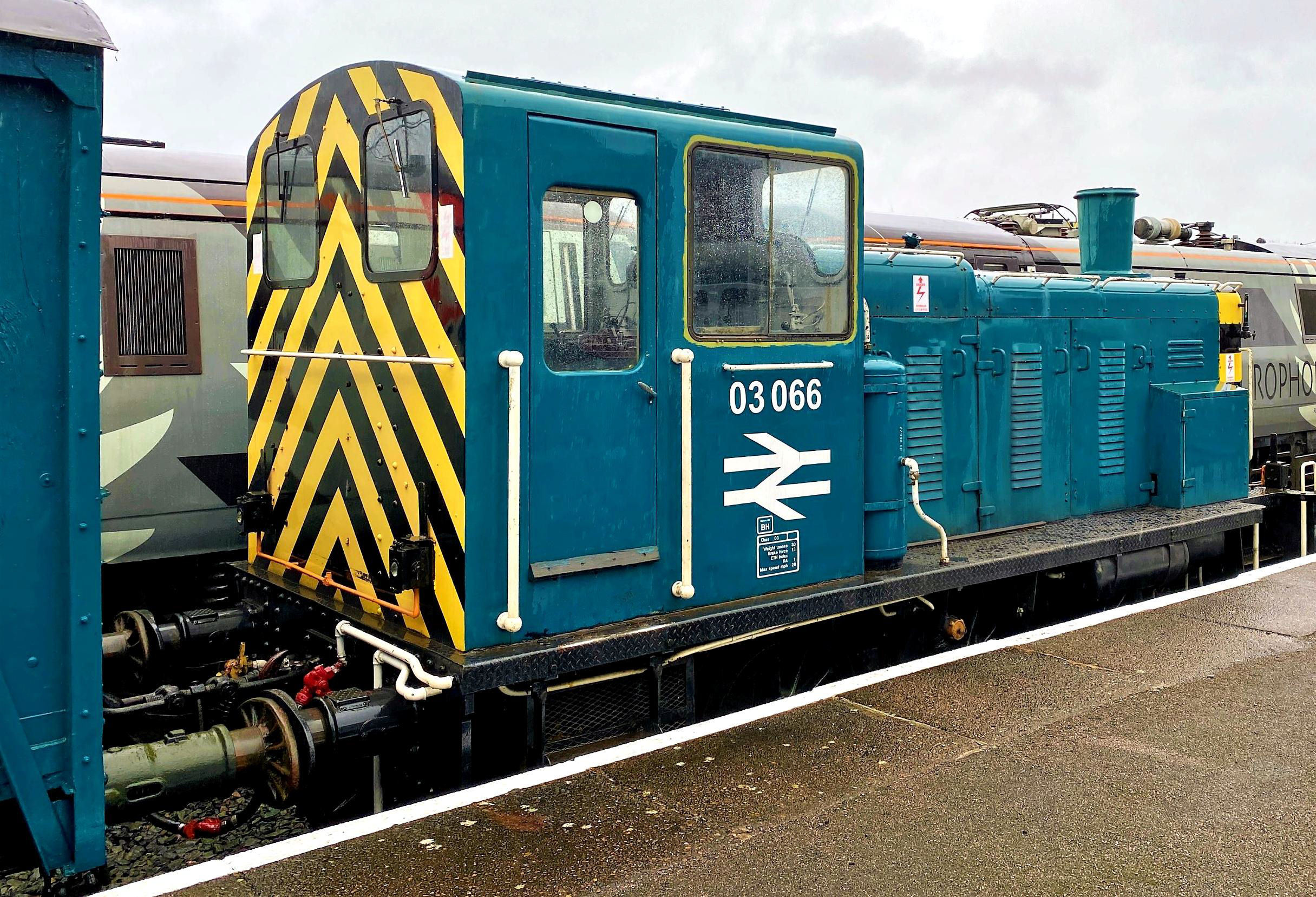 Talking of Molly, the Society's riding vehicle, she was the passenger accommodation for our three trips at 15.30, 16.00 & 16.30 (around 40 members on each). The star of the show was 08956 (usually based at Serco Railtest/AEA Technology Derby Railway Technical Centre) on the front, built 27 Jun 1962 she had very little, if any, recorded passenger usage and looked very smart in dark green. On the back was 03066 a Barrow Hill resident in British Rail blue - perfectly matching Molly's current livery. 'Top & tail' the locos ran from Roundhouse Halt platform to the end of the Springwell Branch, back to the platform then to end of line again before returning to the platform. For many there it was their first experience of 'Molly' the mess van and, due to Covid, actually her first run since our 16 Nov 2019 'AGM Roundhouse Explorer', unsurprisingly with a name like that, also at Barrow Hill. One participant asked if it had been expensive to transport 'Molly' to Barrow Hill for these trips. 'No, she lives there!'