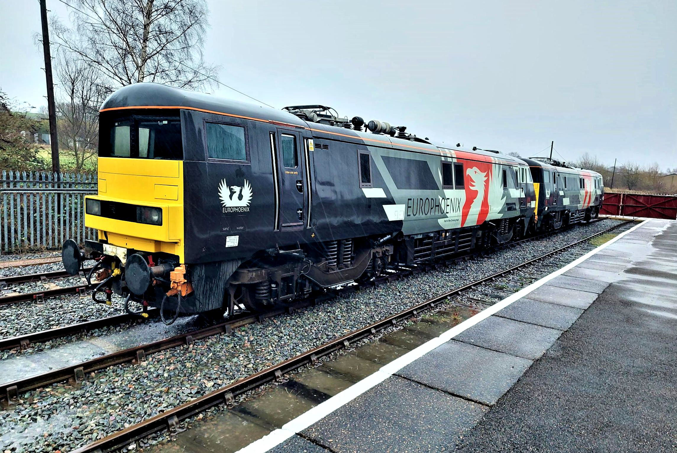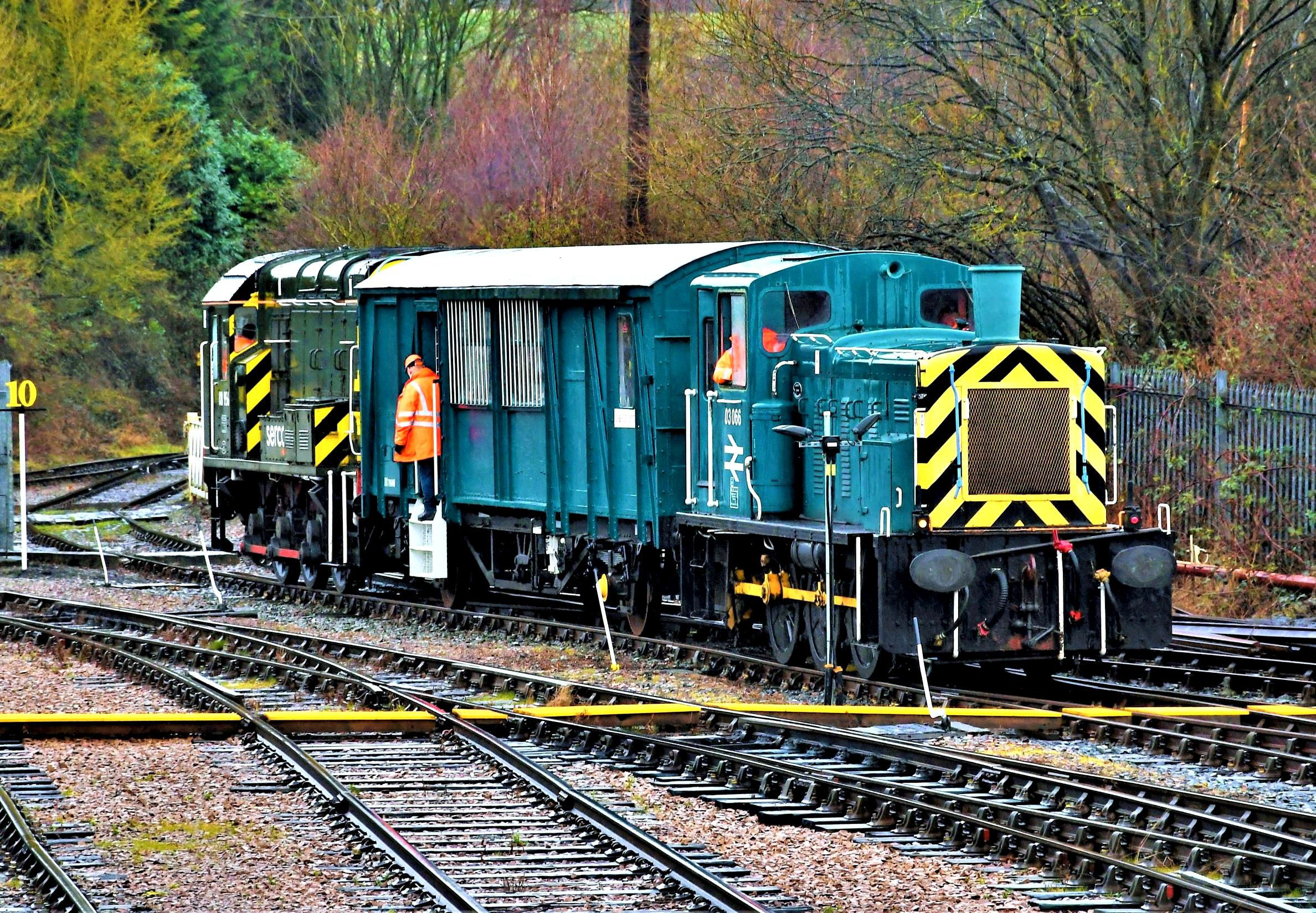 Each run had 72 chains of haulage from each loco. Pleasingly £2,100 was donated to the Barrow Hill Engine Shed Society from the fixture. Thanks to Kev Adlam and Barrow Hill for the arrangements, also Harry Needle from Harry Needle Railroad Company for the provision of the Class 08. Special thanks to Martyn Brailsford who, apart from his many other interests, is a Barrow Hill Engine Shed Society Director, their P'Way Supervisor and a qualified Person In Charge. Martyn has a massive hat collection and on this occasion was wearing his Level Crossing Attendant hat - much needed as he was absolutely drenched standing in the torrential rain and, at times very heavy hail, for 90 minutes.