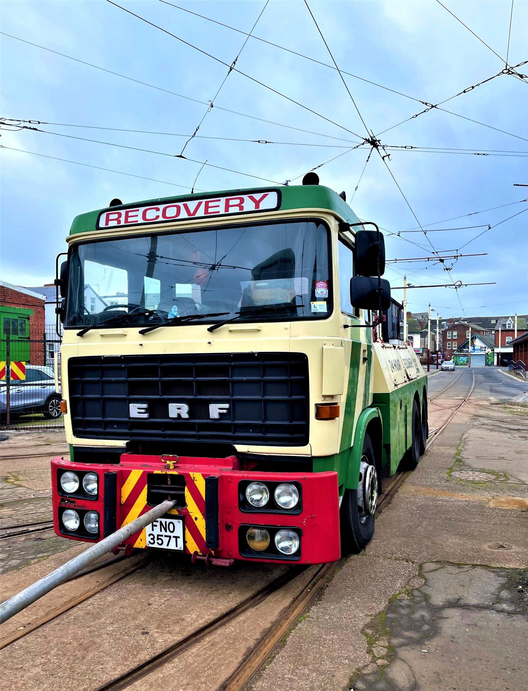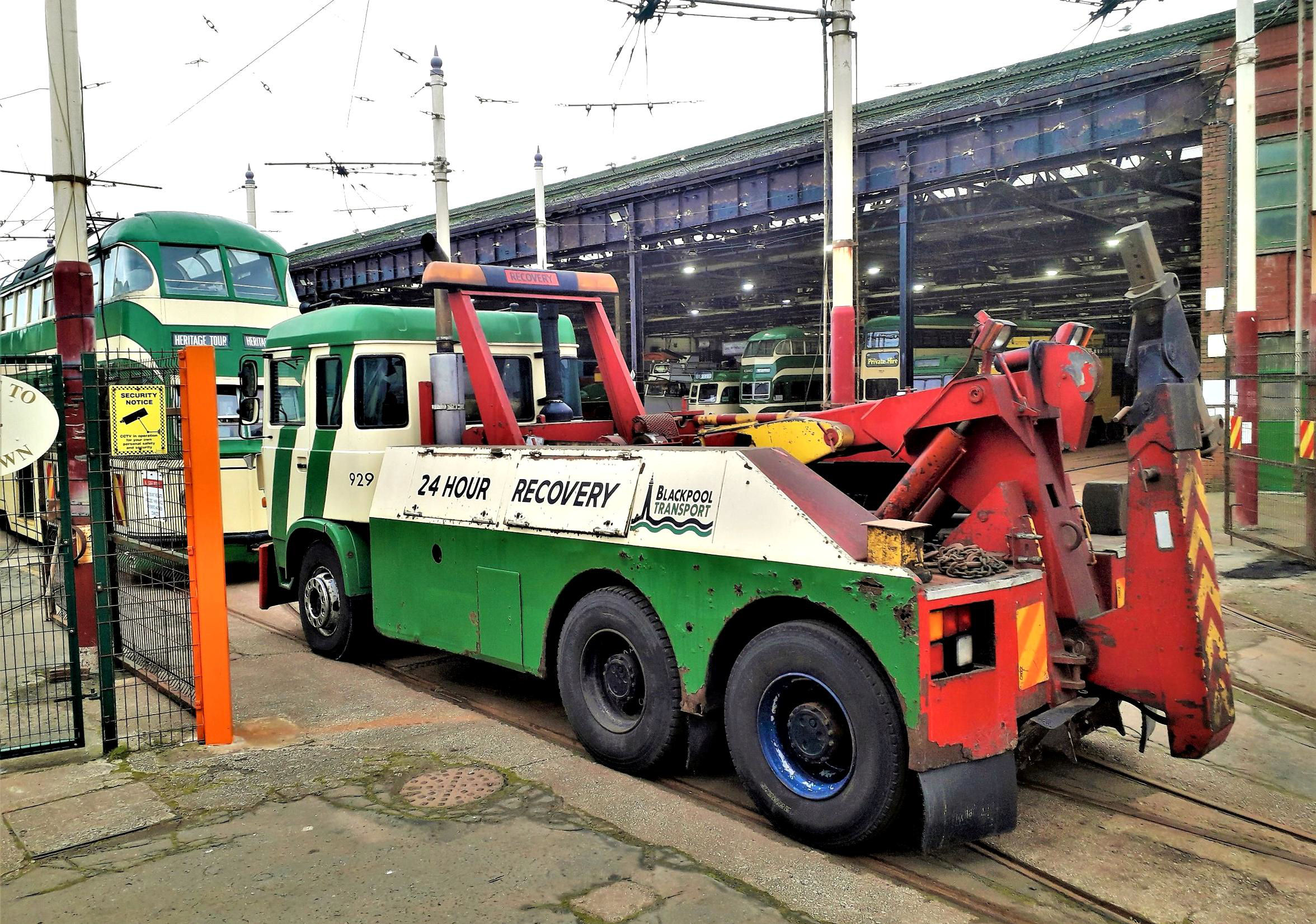 Our two parties ('Tram A/Tram B') joined fellow Balloons 715 and 717 (all our trams had been built in 1934/35) - for short journeys with a difference. '715' was attached to double-decker Overhead Line Maintenance Car 754 and '717' to Bus and Tram Recovery (road) Truck 929! This highly unusual arrangement permitted several very 'rare' manoeuvres, involving '715+754' to the end of line at the start of the 'emergency' section that once led to Blundell St and beyond through to the Promenade.