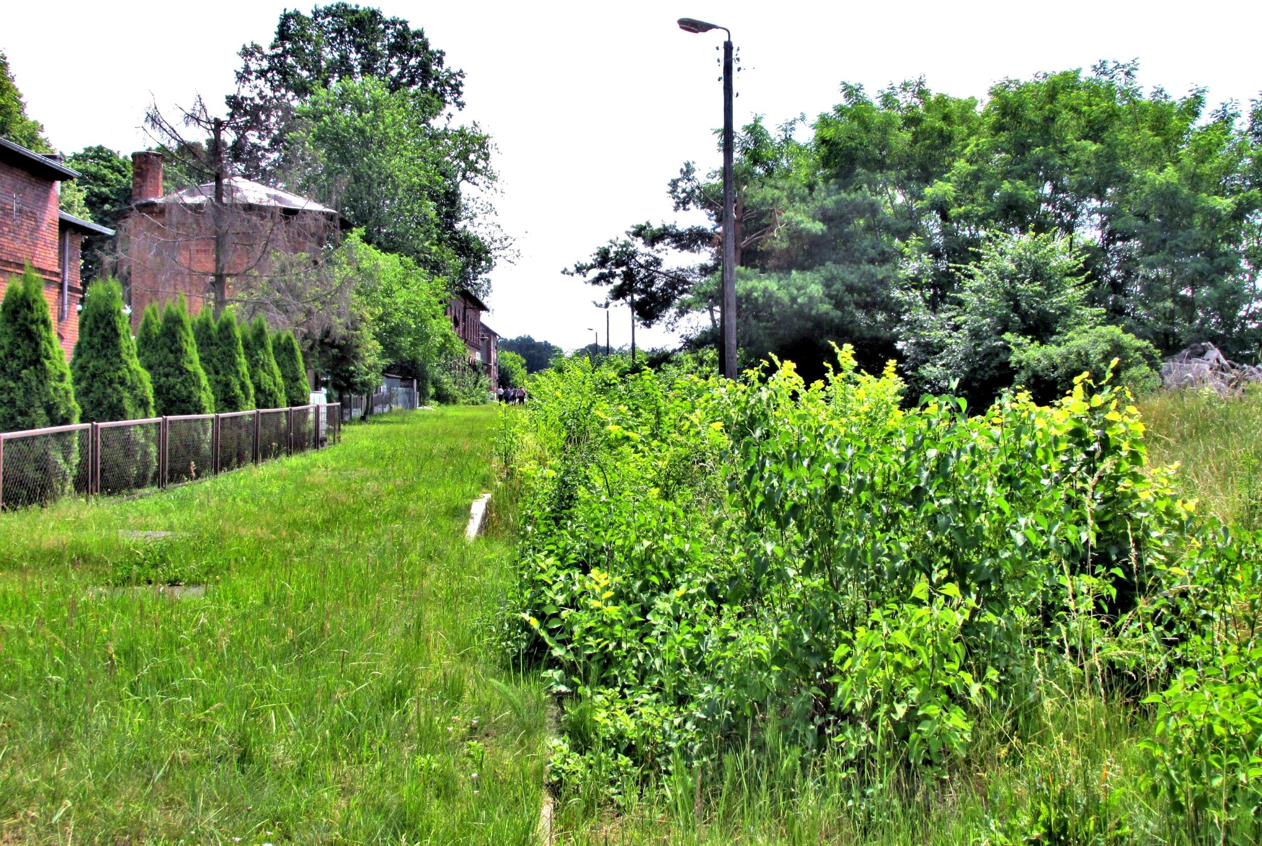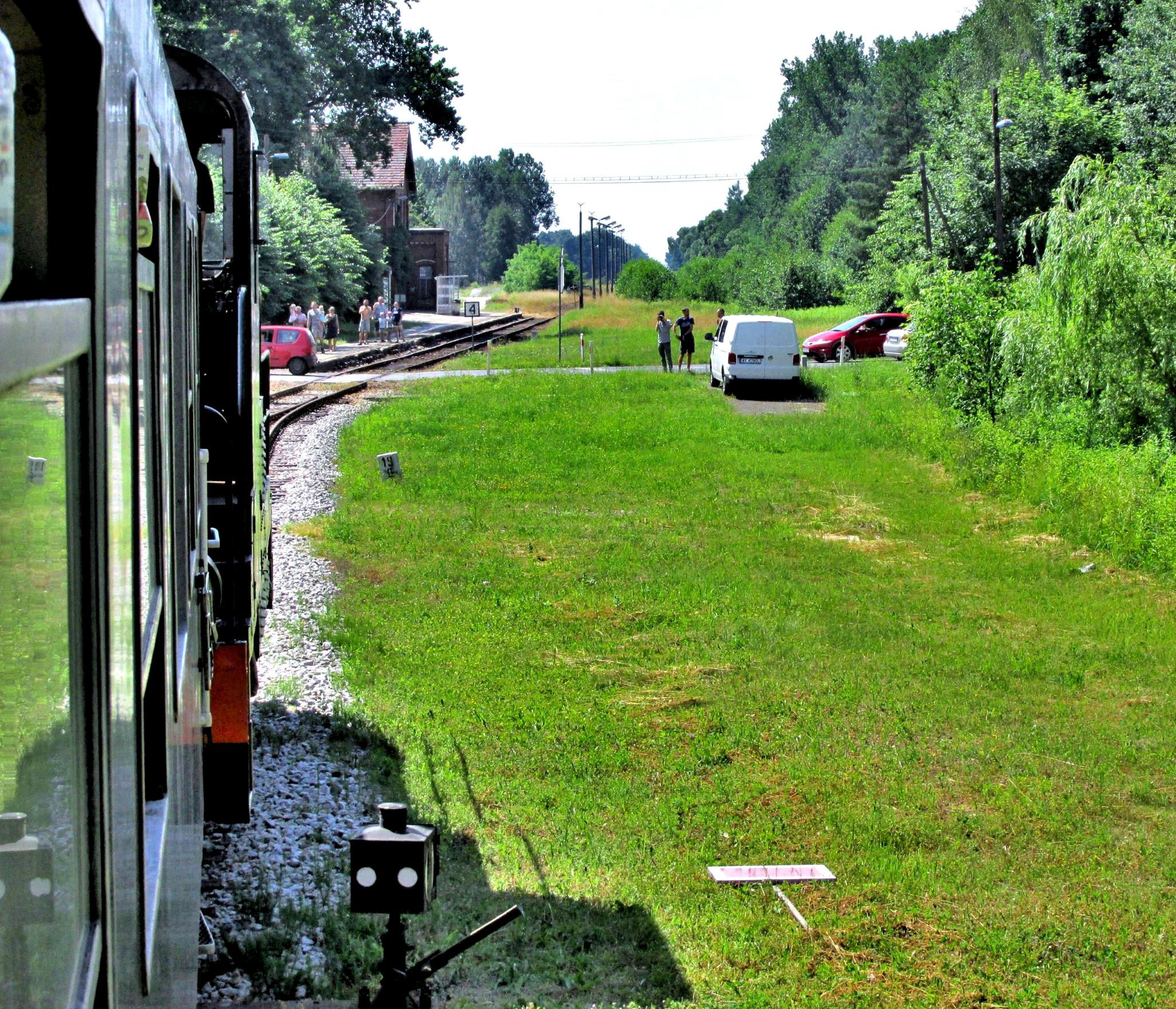 The other end of Murów with its grassy platform. The vegetation hides the tour train ahead but a bit of rail is visible (bottom centre).
