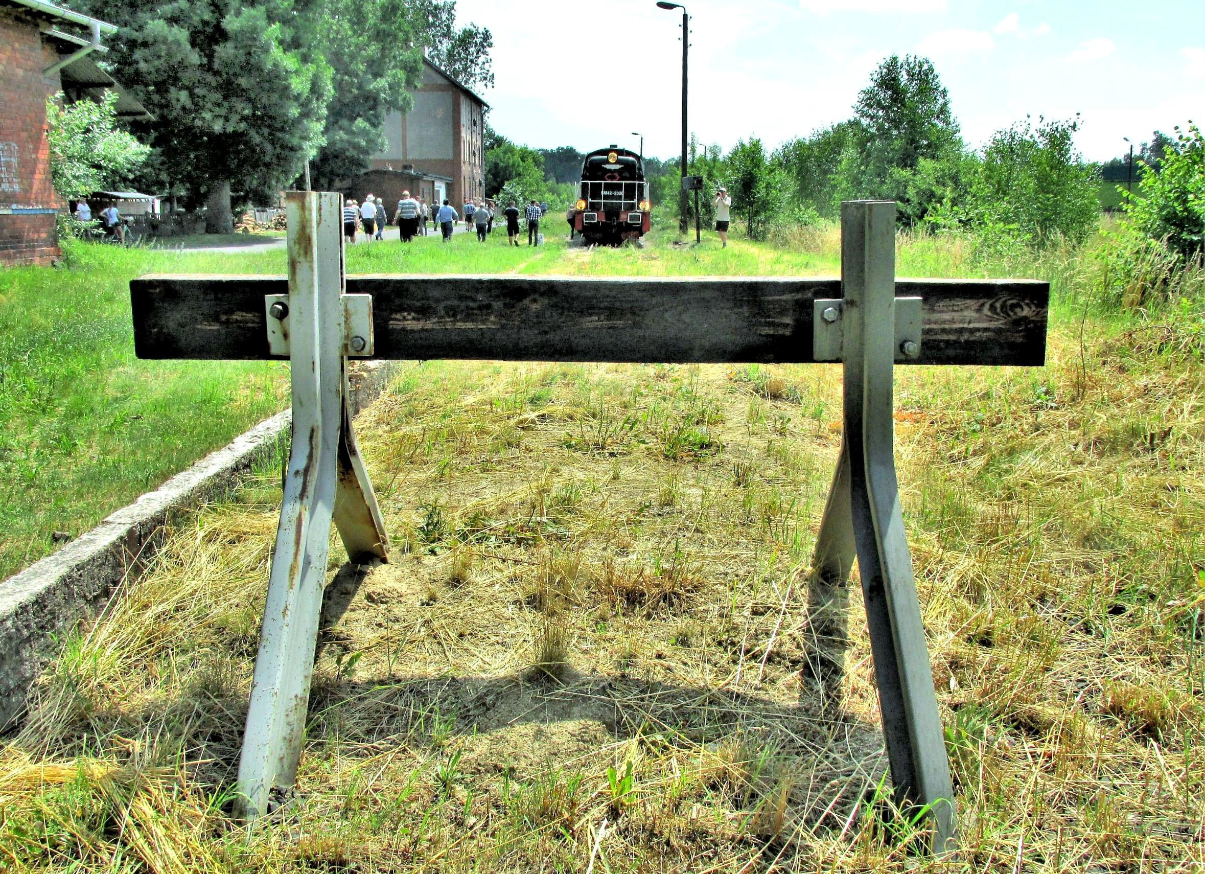 Murów again, the tour train seen from the buffer stops, the former passenger platform is left.