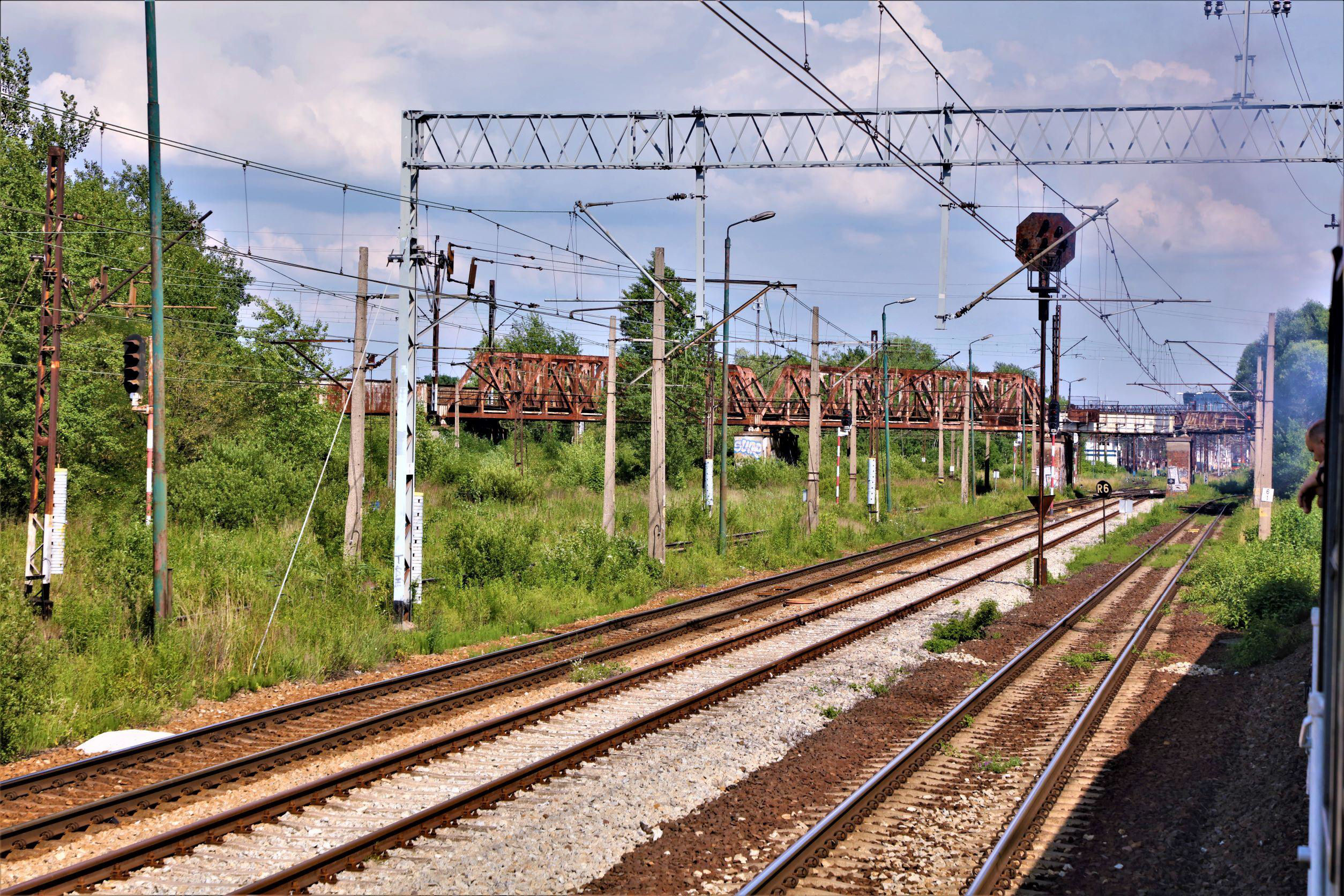 The single line working approaching Opole station (ahead), the new bridge alignment (right) will definitely require a revisit.