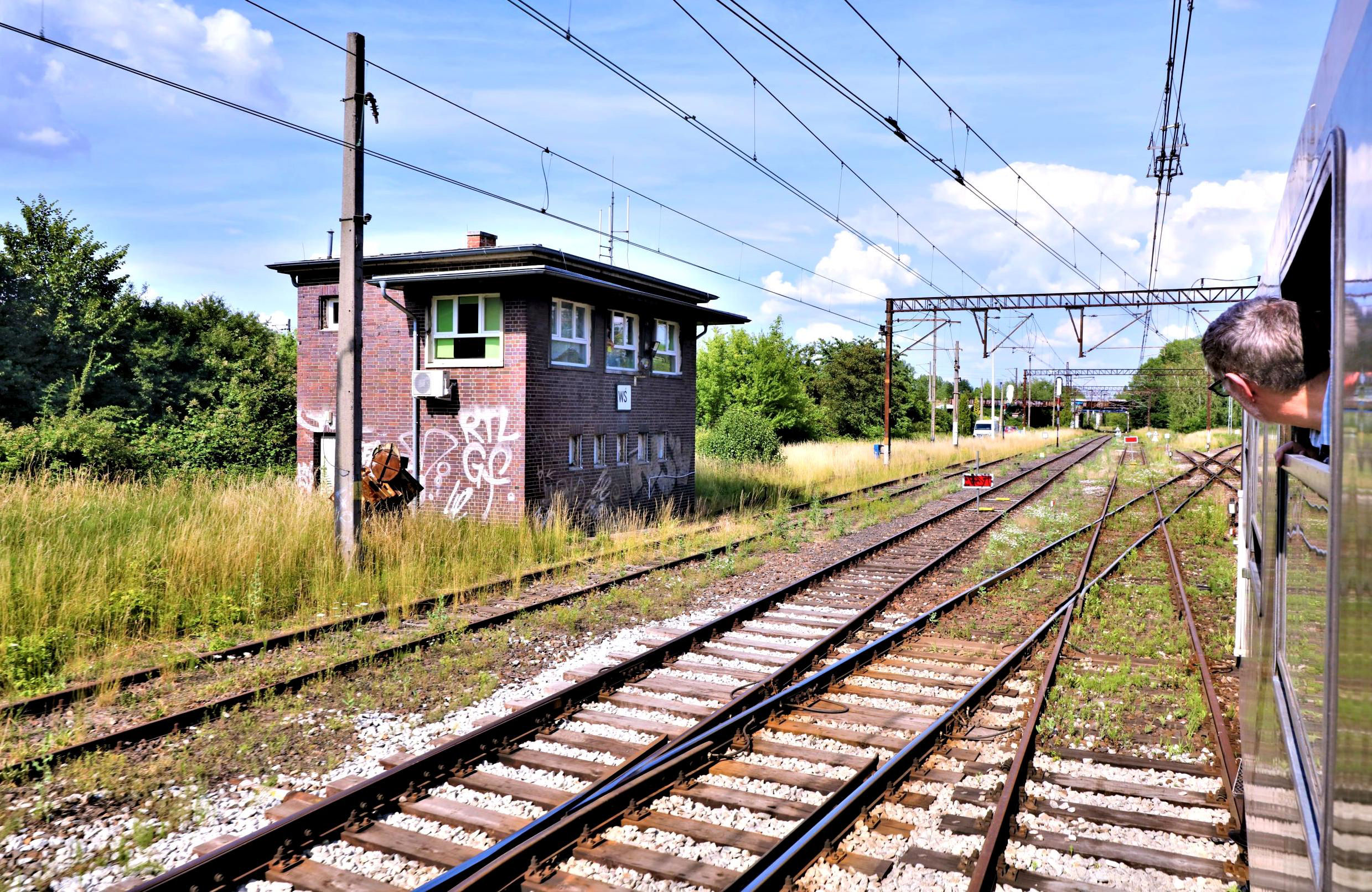 The junction for Wrocław Swiebodzki (the line straight ahead which was closed due to problems with the rail overbridge seen in the distance). The tour unexpectedly curved right instead to Wrocław Główny. The attitude to heads out of the window is quite different in Poland.