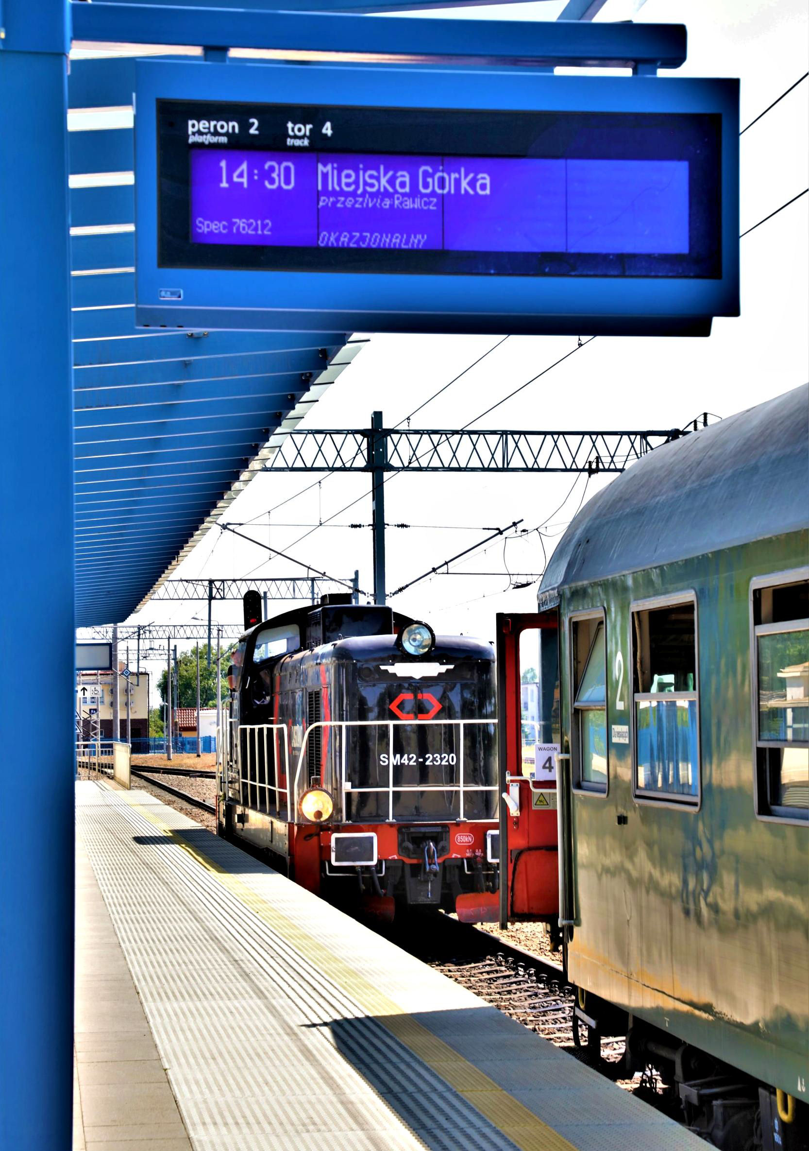 didn't even sell yogurts (neither did Biedronka, 'ladybird' in Polish - a chain of discount supermarkets)! Anyway Wrocław Główny P6 beckoned and SM42 2320 was back for another spin, the twigs were in position (keeping the windows open for ventilation) as today was destined for a temperature of 35oC.