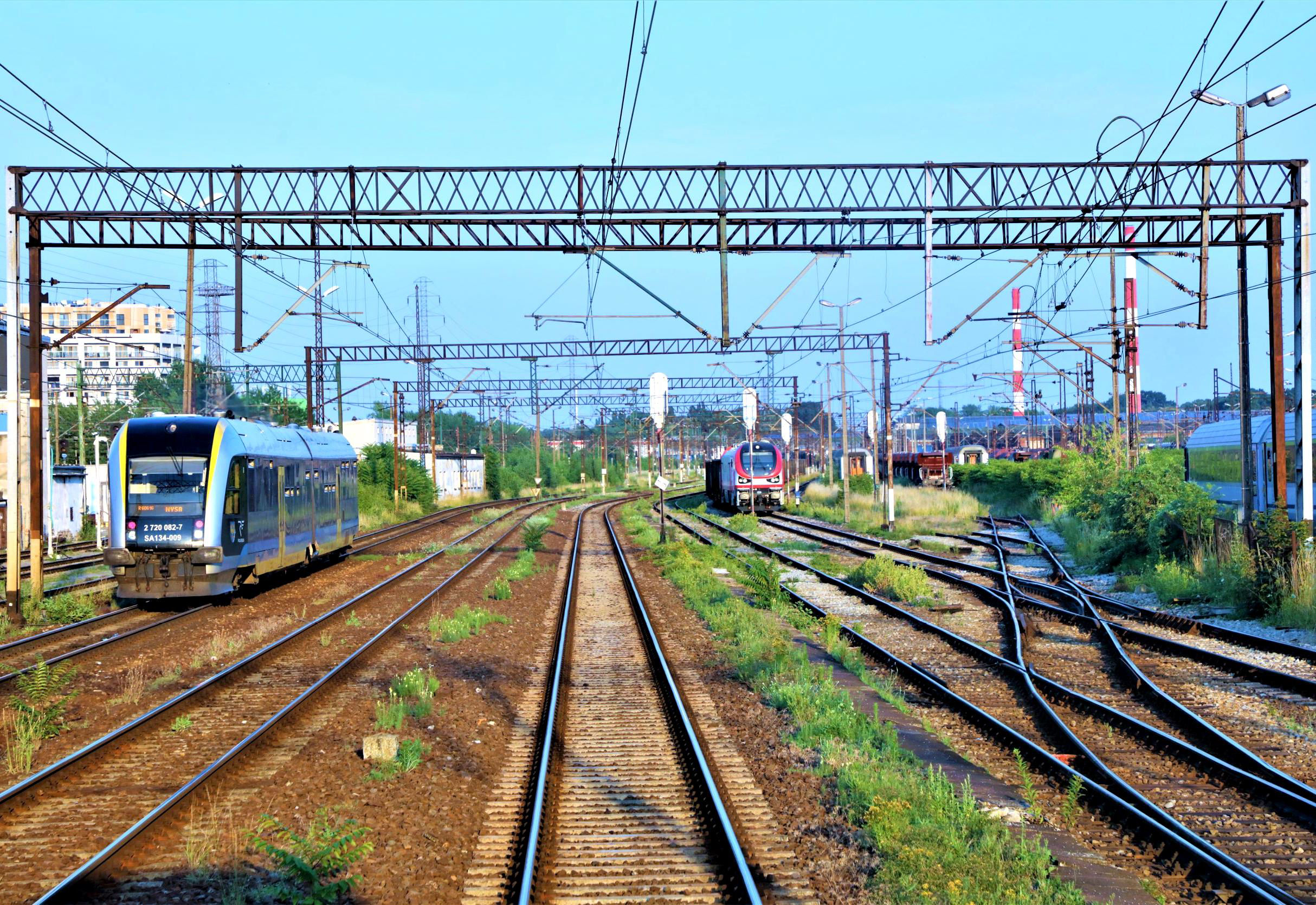 Lines 751 & 752 were used by diversions in recent years but, on passing through Wrocław Mikołajów, we crossed over to freight line 756 and then the western orbital freight route 750 through P.odg Stadion for 10.5km of very rare freight track to the north end of Wrocław Brochów Yards. [P.odg is a junction, from posterunek odgalezny, literally 'separate post' or roughly branch post.]