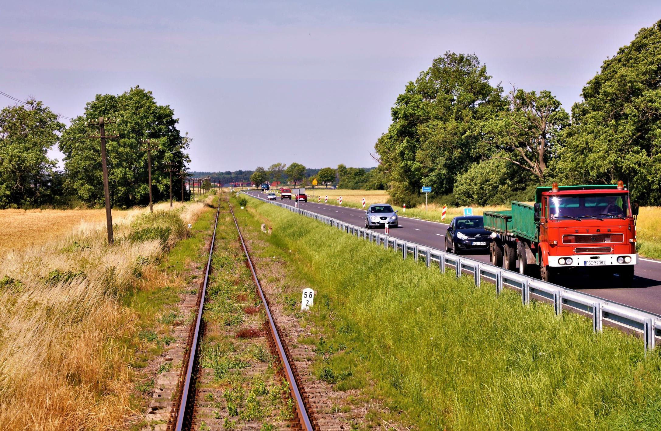 Renovated Line 316 which is due to reopen in Dec from Rokitki to Chojnów, it (right) initially runs alongside the main line.