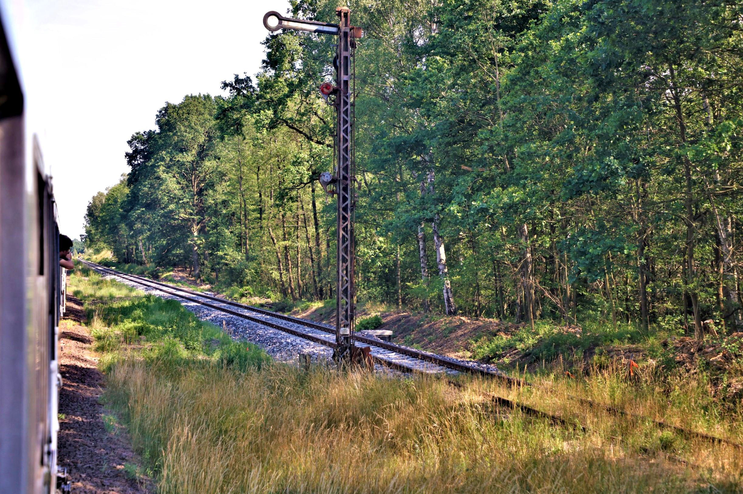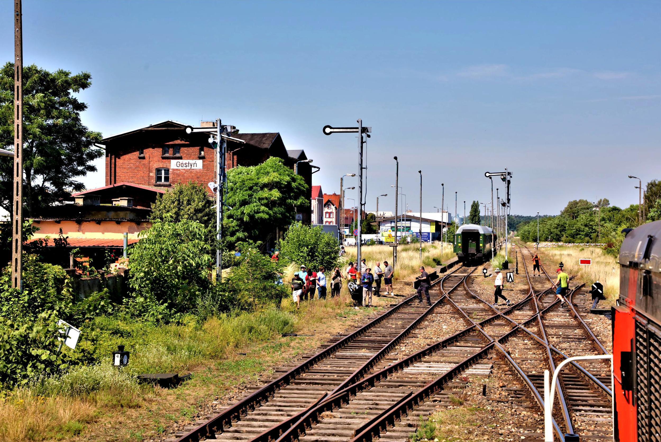 The track was well fettled and clearly has plenty of traffic. At Gostyń (closed to passengers) we slipped into P2 to the surprise of the local drinking club assembled for their morning tipple in the no doubt generally convivial quiet of the station steps. Ahead the line stretched onto Jarocin and is apparently intact; a portion of the line east of Jarocin between Brzostów Wlkp [Wlkp = Wielkopolski, a common suffix for towns in this area of Poland, meaning 'Greater Poland'] and Góra is used by a local draisine operation. A draisine is a light 'people powered' rail vehicle, generally with pedals like a bicycle, with three, (usually four) or more wheels. Gostyń station is controlled by a large, clearly refurbished, signal box which also oversees the wide level crossing just beyond. Past that, a bit far to jog and take photos of the station as well, (some did walk there and back) were several sidings with at least two private owner shunters. The station is completely extant but well vegetated and classic 'German pattern' semaphores abound - as on the masthead on BLNI. It really feels like it could be revived almost overnight and proposals are already progressing at least for the section we traversed this day to be reopened to passengers. Returning, we paused for photos at Kosowo Wlkp, looking pretty intact but a wilderness in a wilderness. We all thought, after these few days, that Poland should have developed their own version of the great British euphemism of the suffix 'Road' after station names to say in code that this station isn't actually anywhere near this place - Gatehouse of Fleet (not Road) excepted!