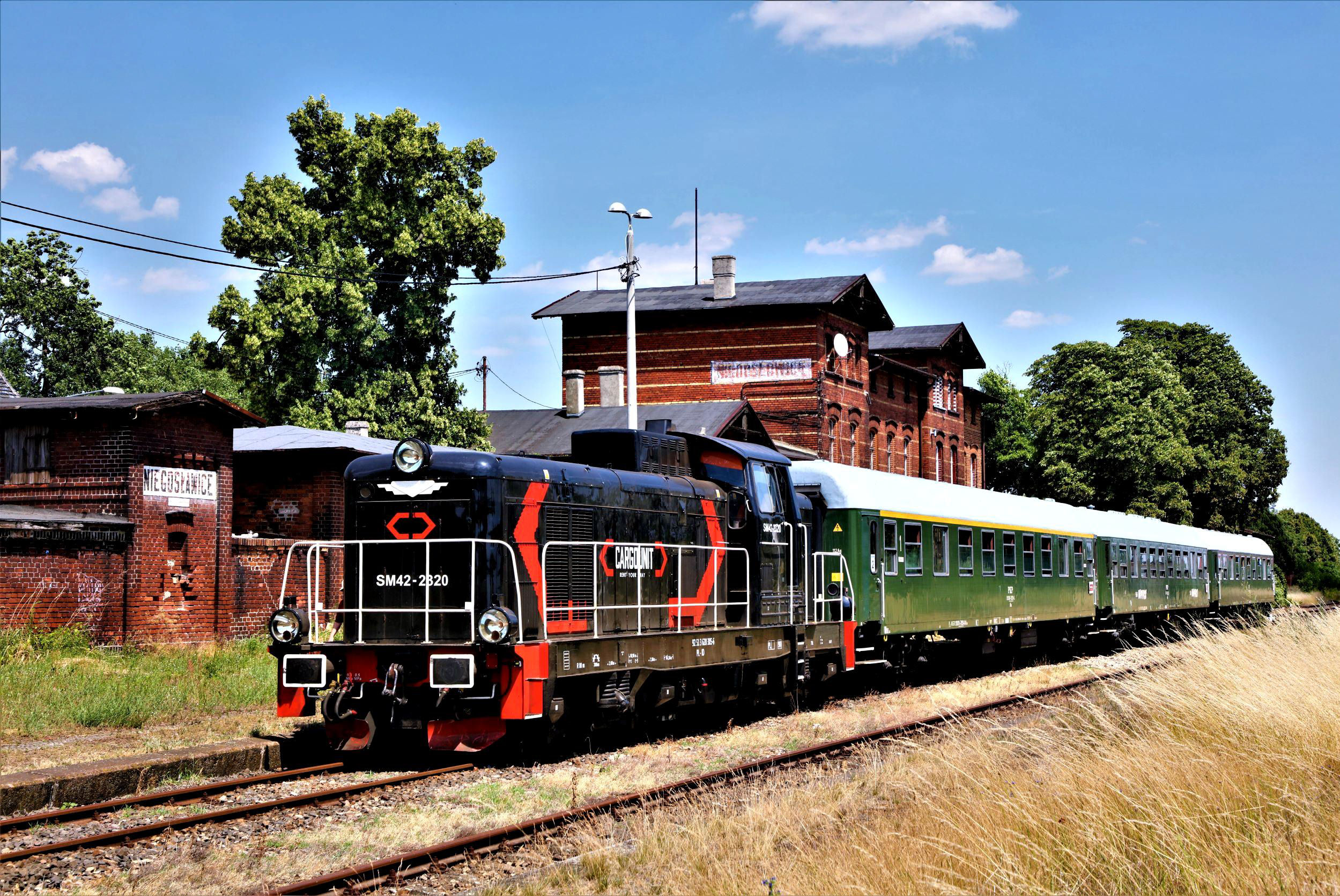 Zamienice station where Line 316 (reopening in Dec from Rokitki) stops being parallel to the main and diverges off to Chojnów (population 7,000).