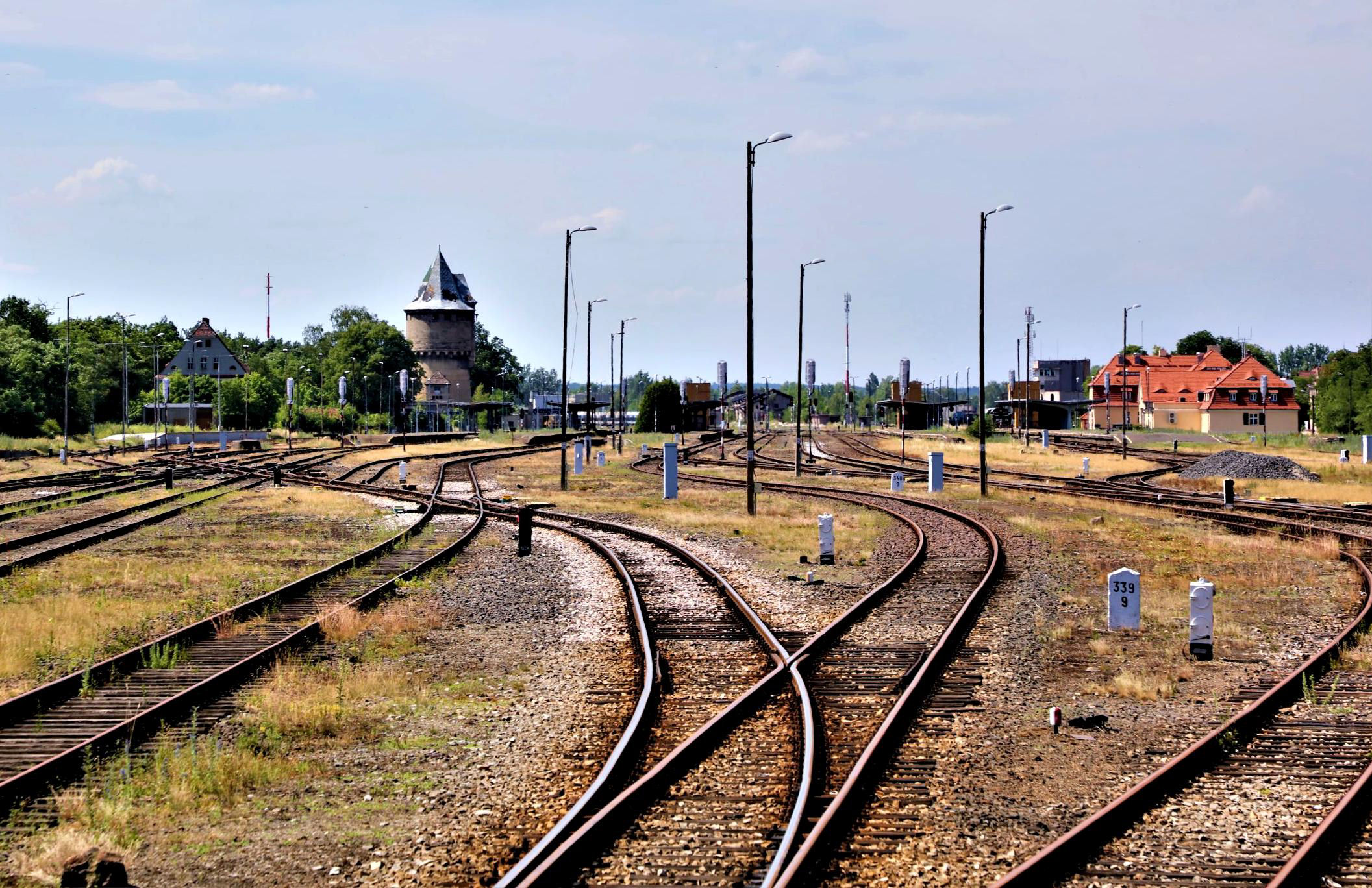 Approaching the vast sprawling Żagań„ station its with many platforms, said to be the largest in Poland that is not electrified (yet).