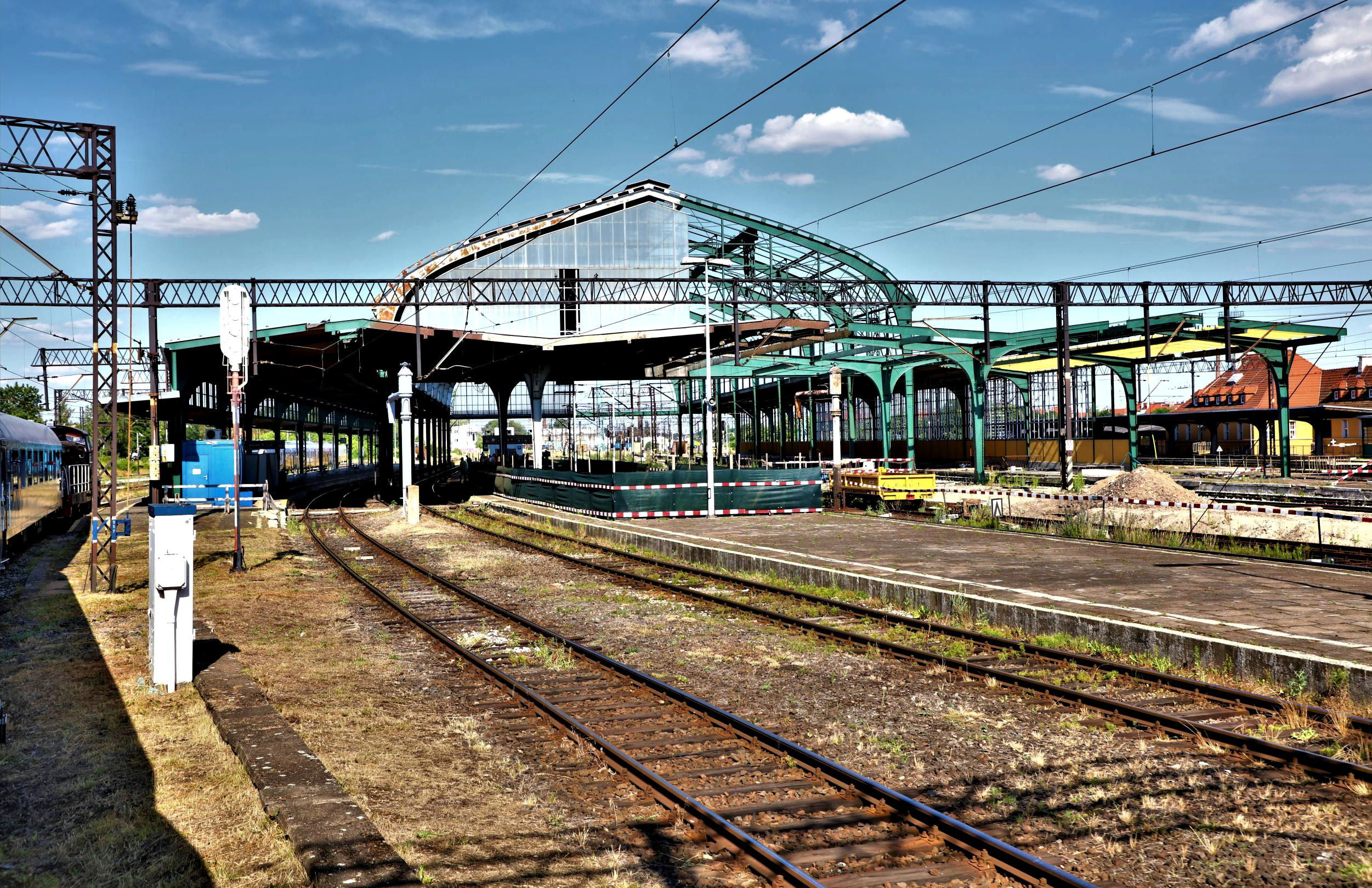 The tour (far left) arrives at Legnica station where major refurbishment project is in progress as is evident.