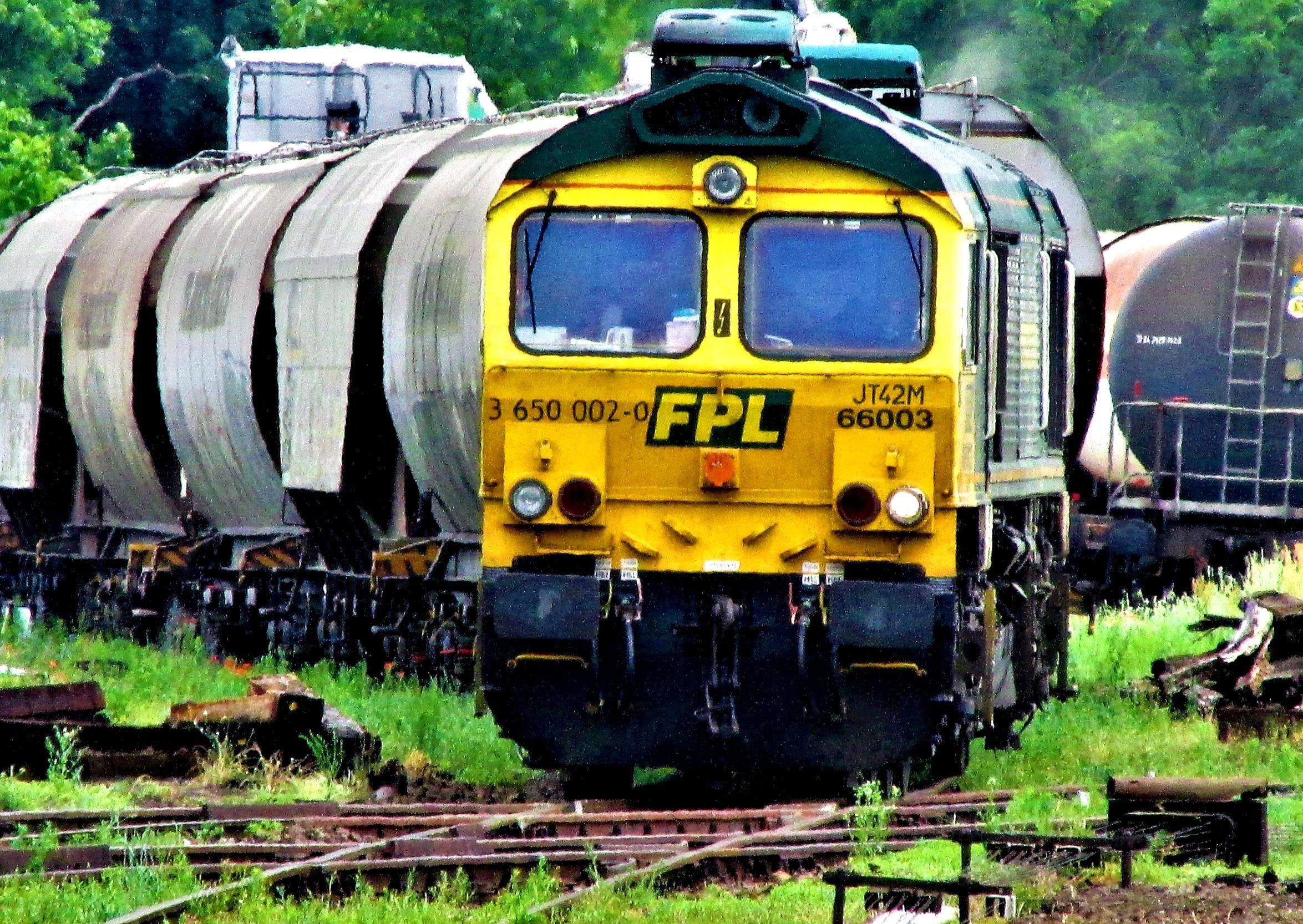 Nysa Yard, Freightliner Poland 66003 is built to UK loading gauge but has never been over here and contrasts with its Berne Gauge wagons.