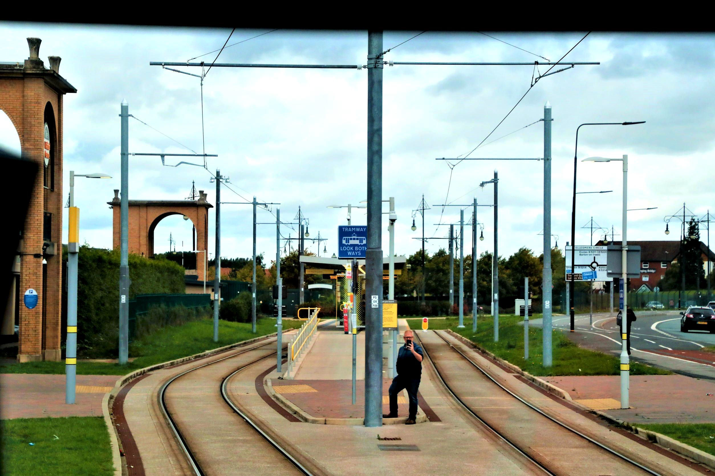 The Trafford Centre a solitary Kev Adlam videoing our tram changing platforms (everyone else was on board doing the crossovers).
