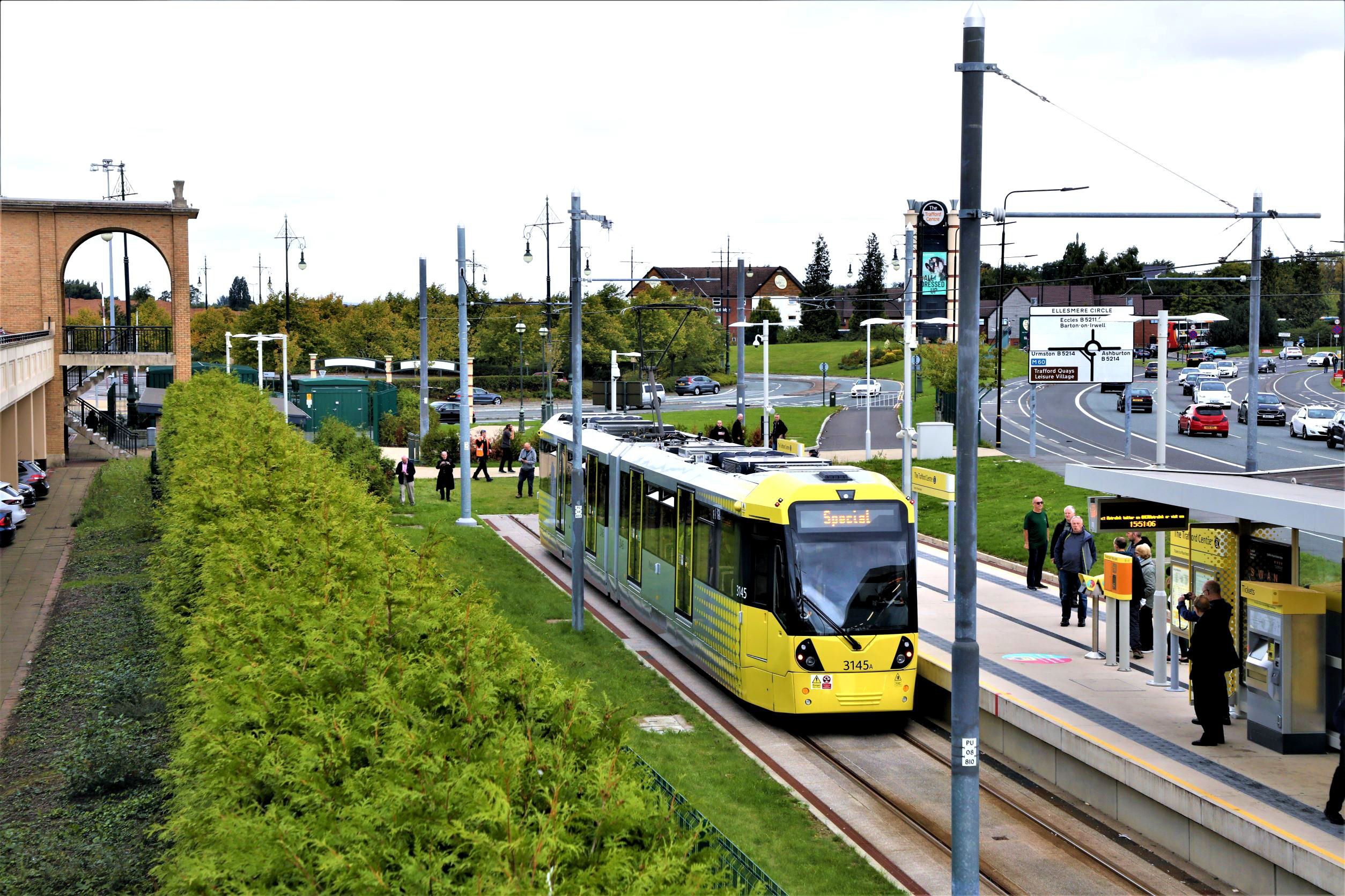 The Trafford Centre with the unusual sight of two single trams in the same platform at the same time. Furthest left on the platform ramp is our member Dr John Hampson who is standing for a Committee post at our forthcoming Bo'ness AGM.