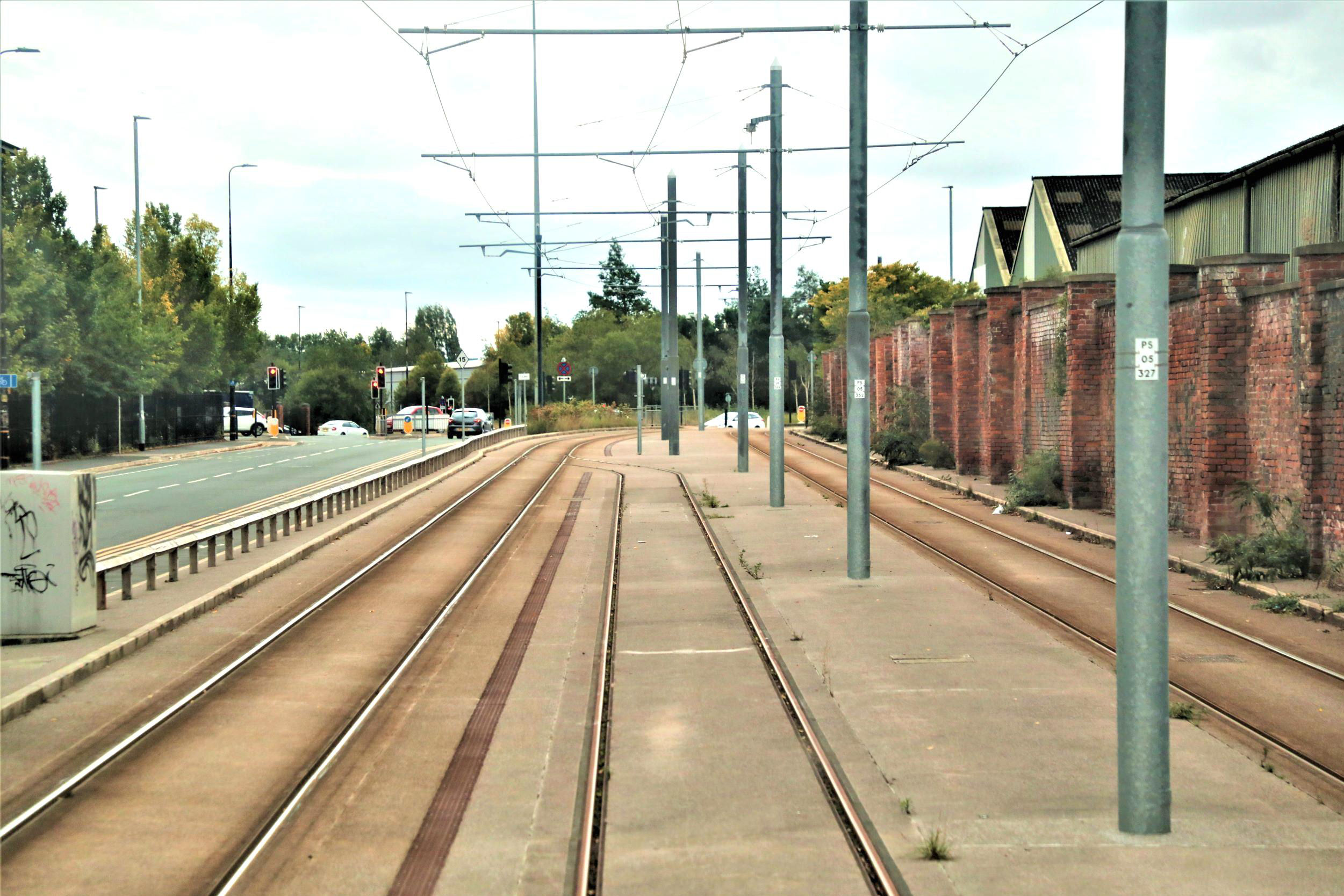 Imperial War Museum Turnback - a through line - from the (then) rear of the tram looking back towards The Trafford Centre.