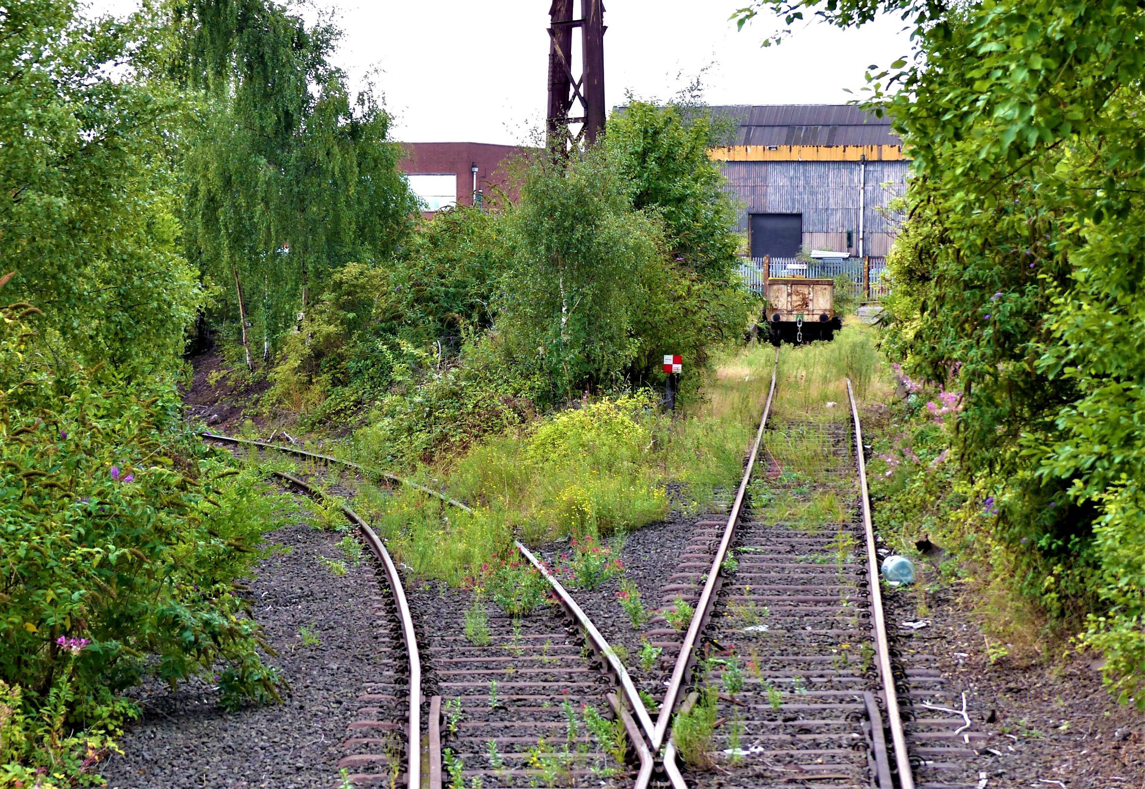 The hidden CEW (Central Engineering Workshops) Dock for scrap, accessed by a headshunt, note metal sleepers. Left is the incline down to civilization.