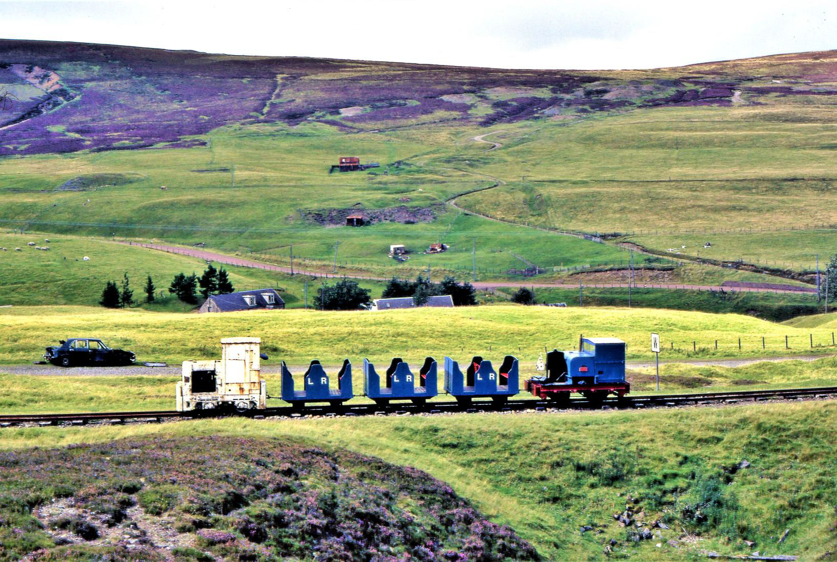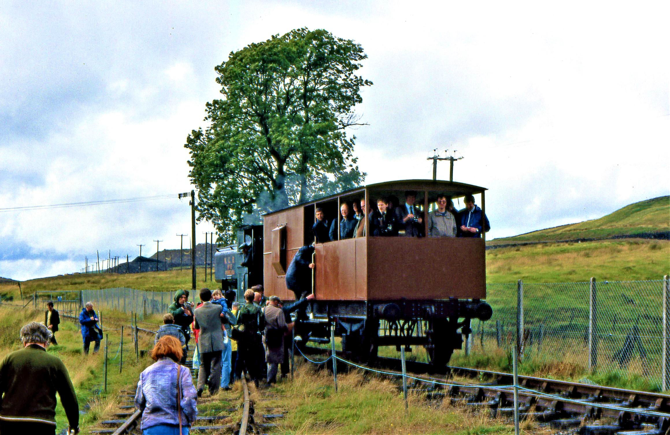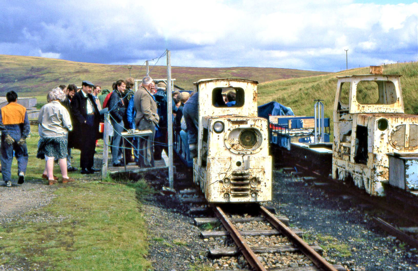 Rewind 34+ years, our Sun 28 Aug 1988 visit to Leadhills ('station' off the right). In those days known as the Lowthers Railway (still its legal title), it only went to an old quarry; the loco shed was a simple wooden affair at the end of line. Some may recognise a few faces!
