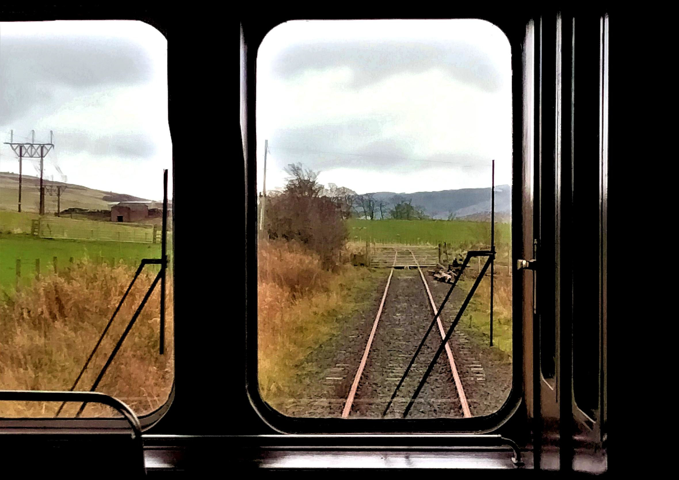 A wonderful view of the line from the observation saloon - approaching Laight Level Crossing (53m 63ch) - the train is propelled in this direction.