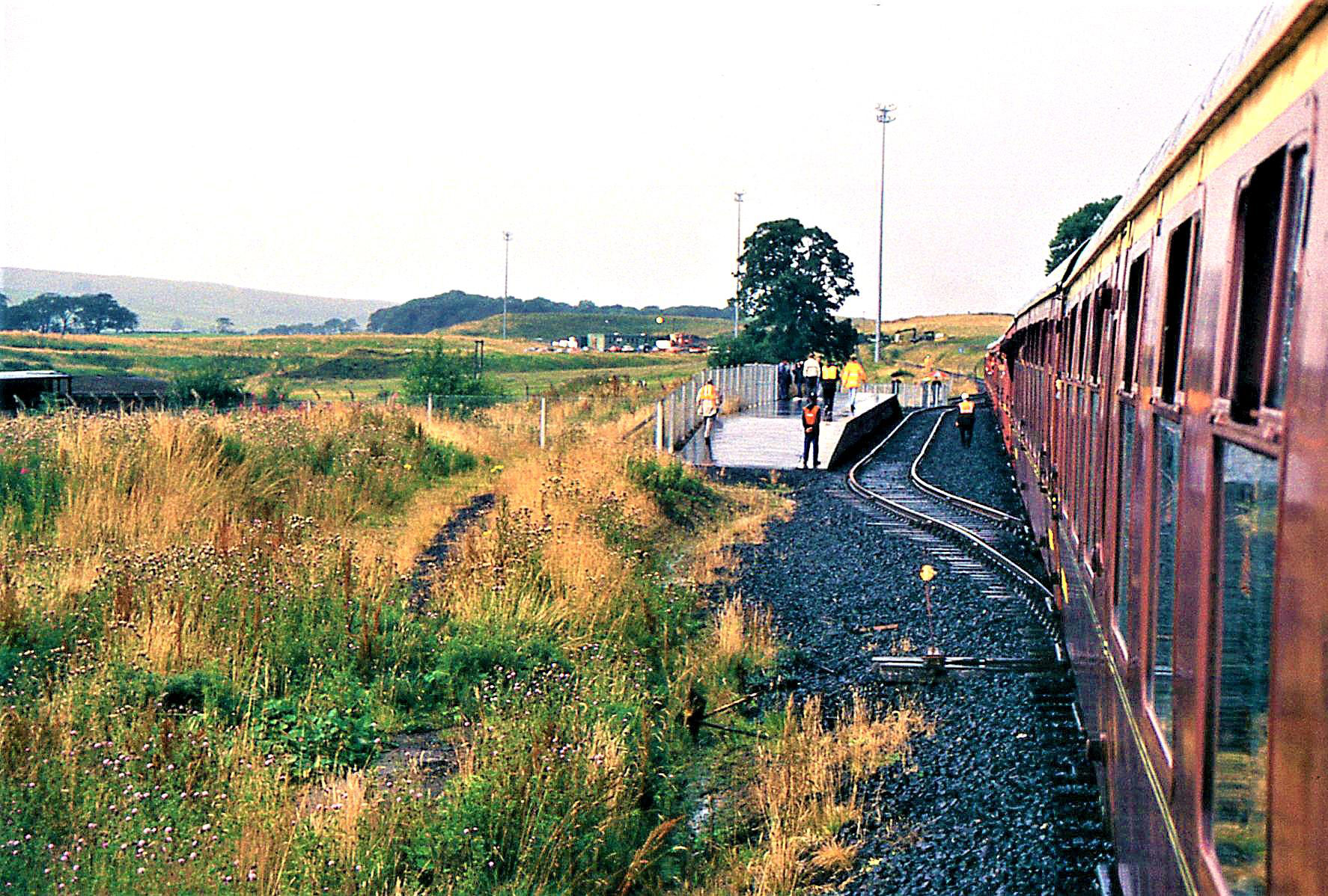 Leadhills station was very basic in 1988, by the short wooden platform is Kevin Driscoll (with cap)