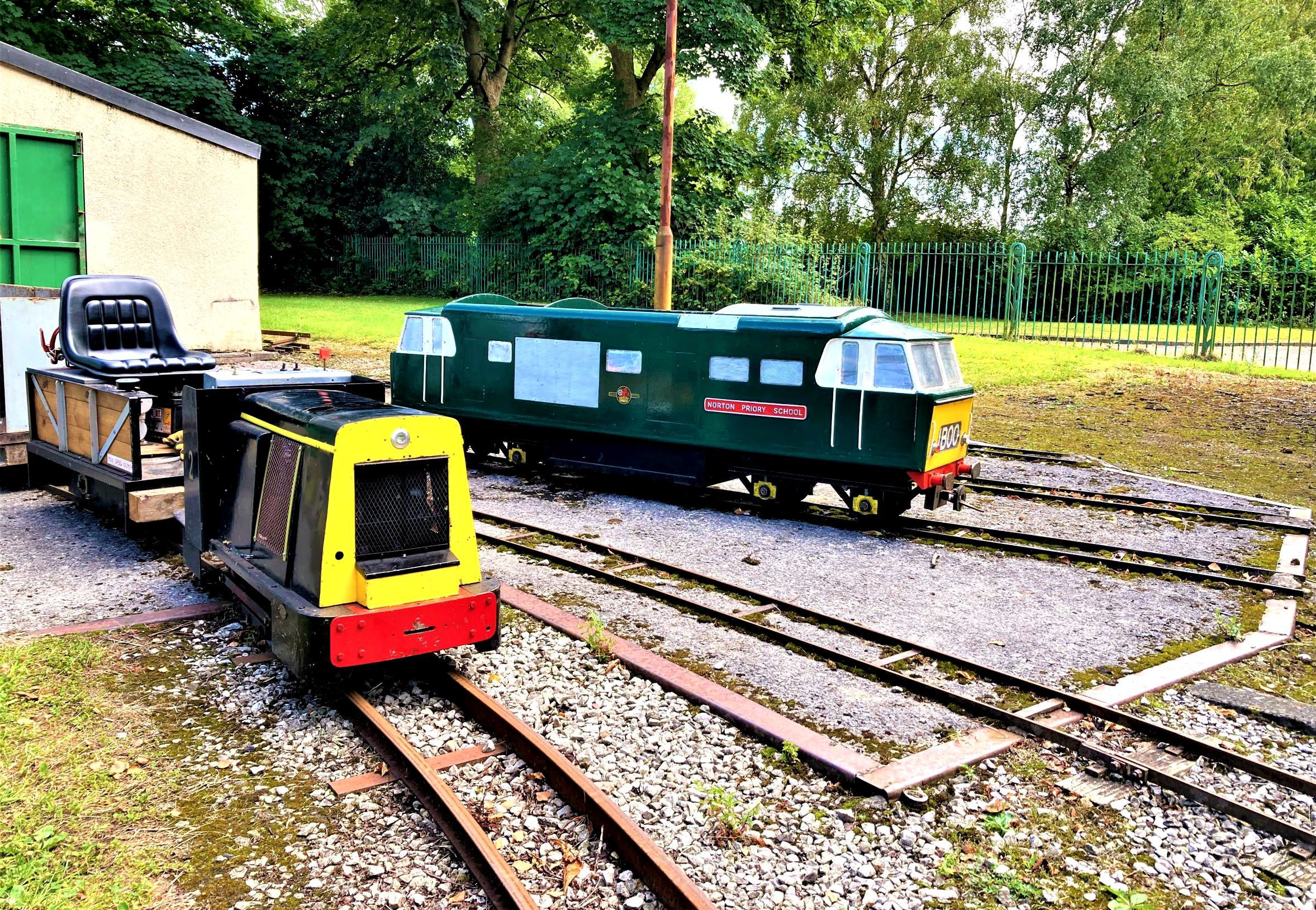 It is a good sign when the train formation shrinks during a minor railway fixture and when the traction is changed over. Both happened at this point. The party was split in two and a two coach train set out behind battery electric 'Halton Castle' (ex-Conwy Valley Railway Museum). This was a public run plus shunts into the two lines out in the country park and a departure from, or arrival into, the shed area (depending on the group). Norton Siding was simple enough; formerly a loop for recessing trains but the facing points had been removed. A quick count down, a kiss of the buffers and we were off again.