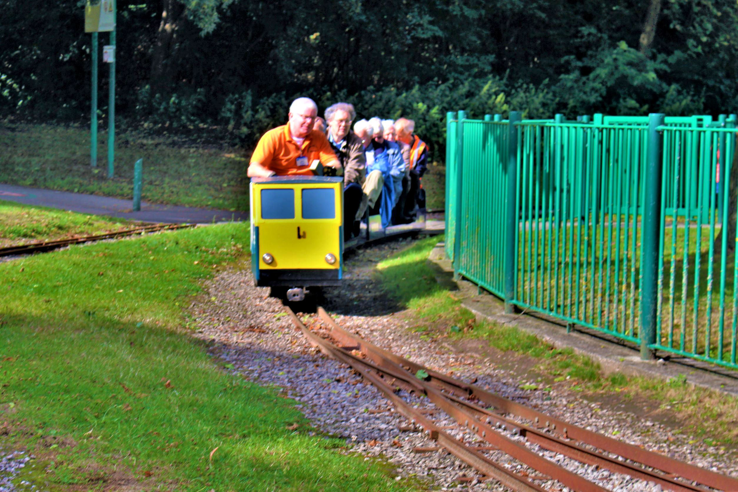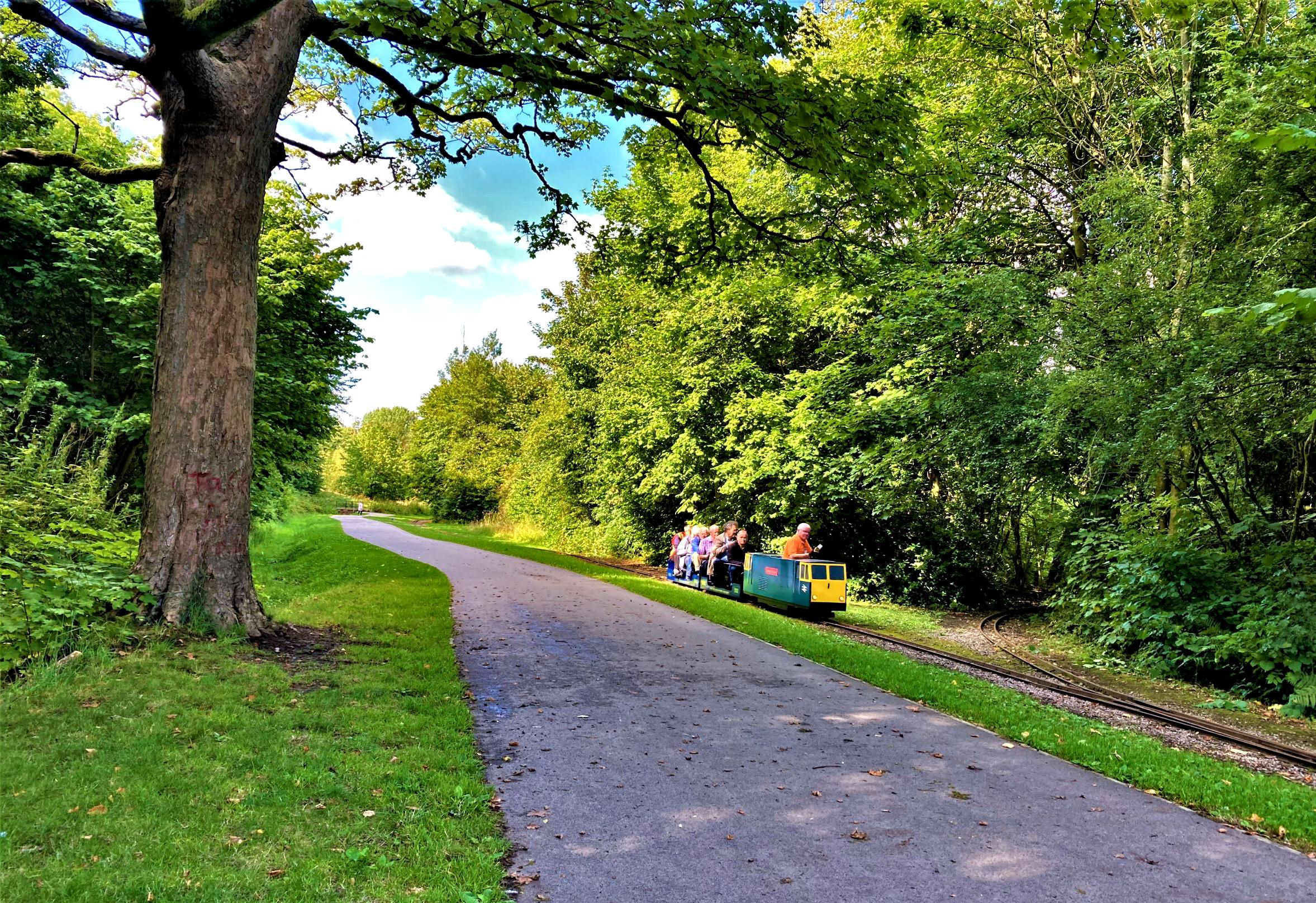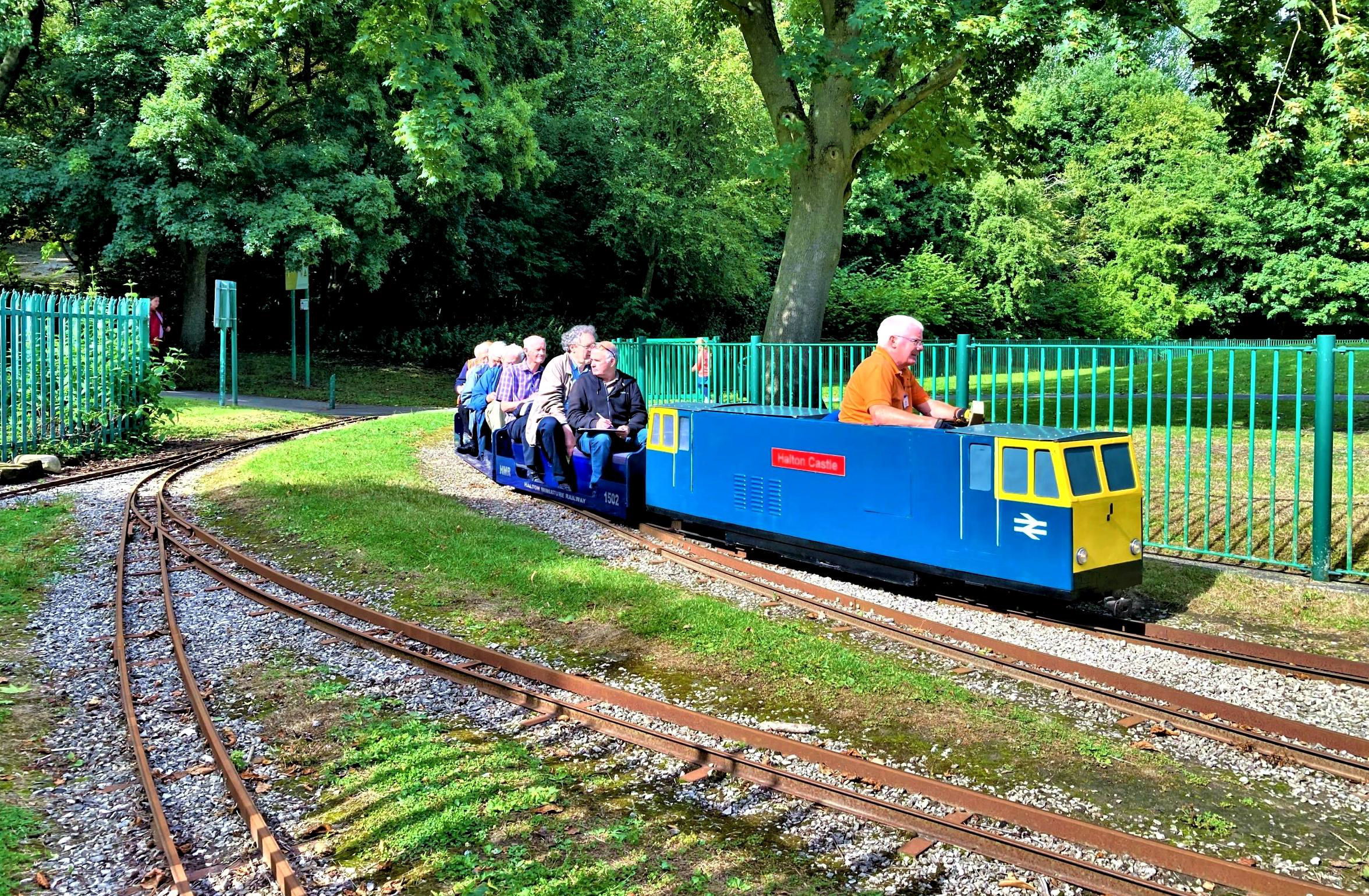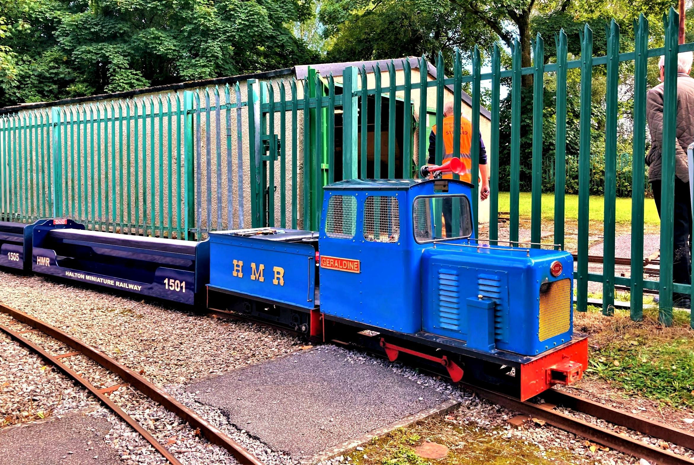 Google Maps proved essential for the last stage; it started simply enough (on the pavement parallel to the busway). Then we had to veer off through one of those 1970's housing estates where the roads are separated from the walkways with no 90o turns. [Classic new town syndrome.] I only took us down one wrong turn, so not too bad… Soon we were in Town Park, where the Halton Miniature Railway is located, an extensive, semi-wild country park in a moderately hilly area; the railway is at the south.