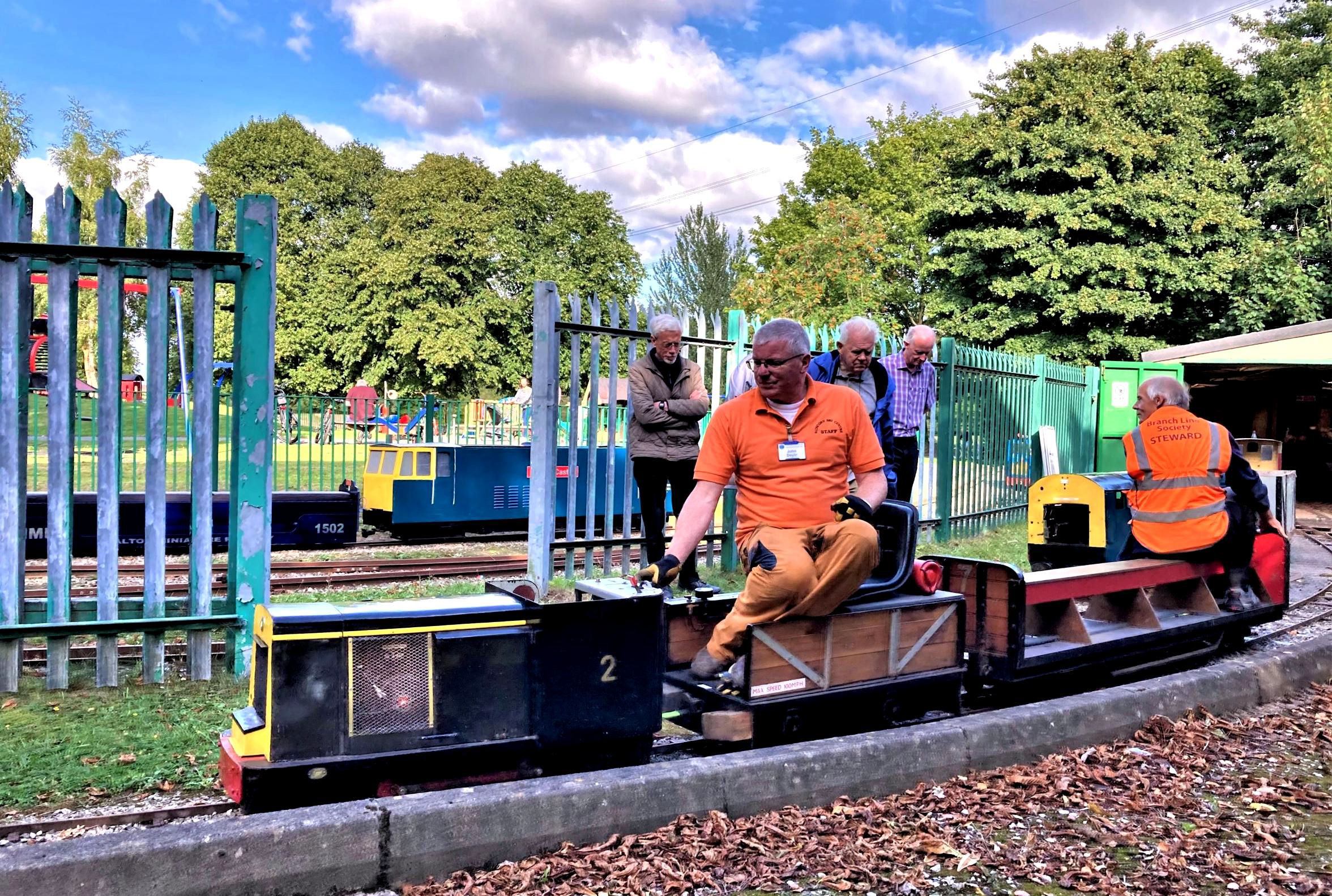 I enquired if anyone in the party needed the ski slope for slippage. Our BLN editor enquired after my attempts to visit the Orchid Line on the IOM two days before (unfortunately, third time unsuccessful but that is another story). This helps to explain the date of this fixture. We had run a very successful series of miniature and narrow gauge fixtures on the IOM the previous weekend and INTERCITY had a Crewe to Stranraer charter the next day, so it was expected that many members would be in the area. It is certainly why I was there. Unfortunately, the charter was postponed with just over a week's notice due to an RMT strike. But here we were on a Tue teatime, perambulating round a park in shirt sleeves.