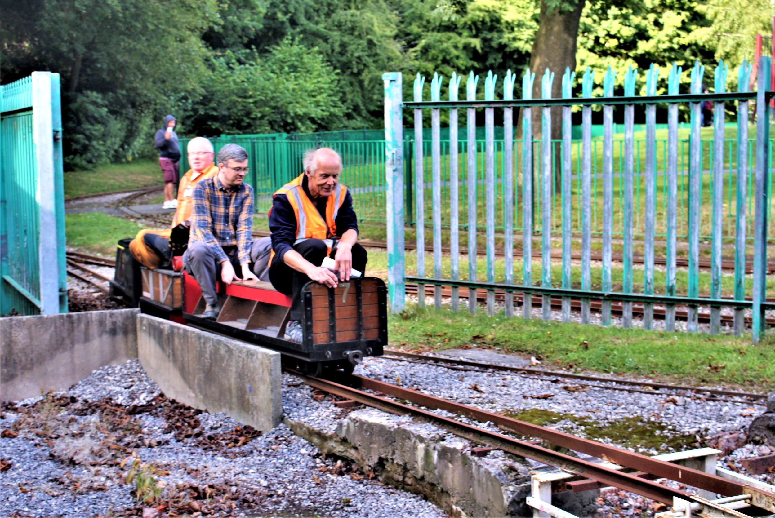 Soon, useful landmarks came into view: the railway's storage sheds, some 7¼'' gauge track and our General Secretary (who organised the visit). There were no other miniature members in sight and it was 30 min until the fixture was due to start; we must be the first to arrive. You are almost the last to arrive said the GS, everyone else is at the café having an ice cream. Soon we were with the rest of the group at the foot of the dry ski slope. This is operated by the same man as the miniature railway, John Doyle, our host for the day. In fact, he had to do the whole thing himself as his volunteers had gone down with Covid. Despite this, John ran the whole thing cheerfully, efficiently and with a clear understanding of what we wanted. Many thanks to John for an excellent evening of entertainment. Our visit illustrated why the railway has been altered over the years so it can be one man operated.