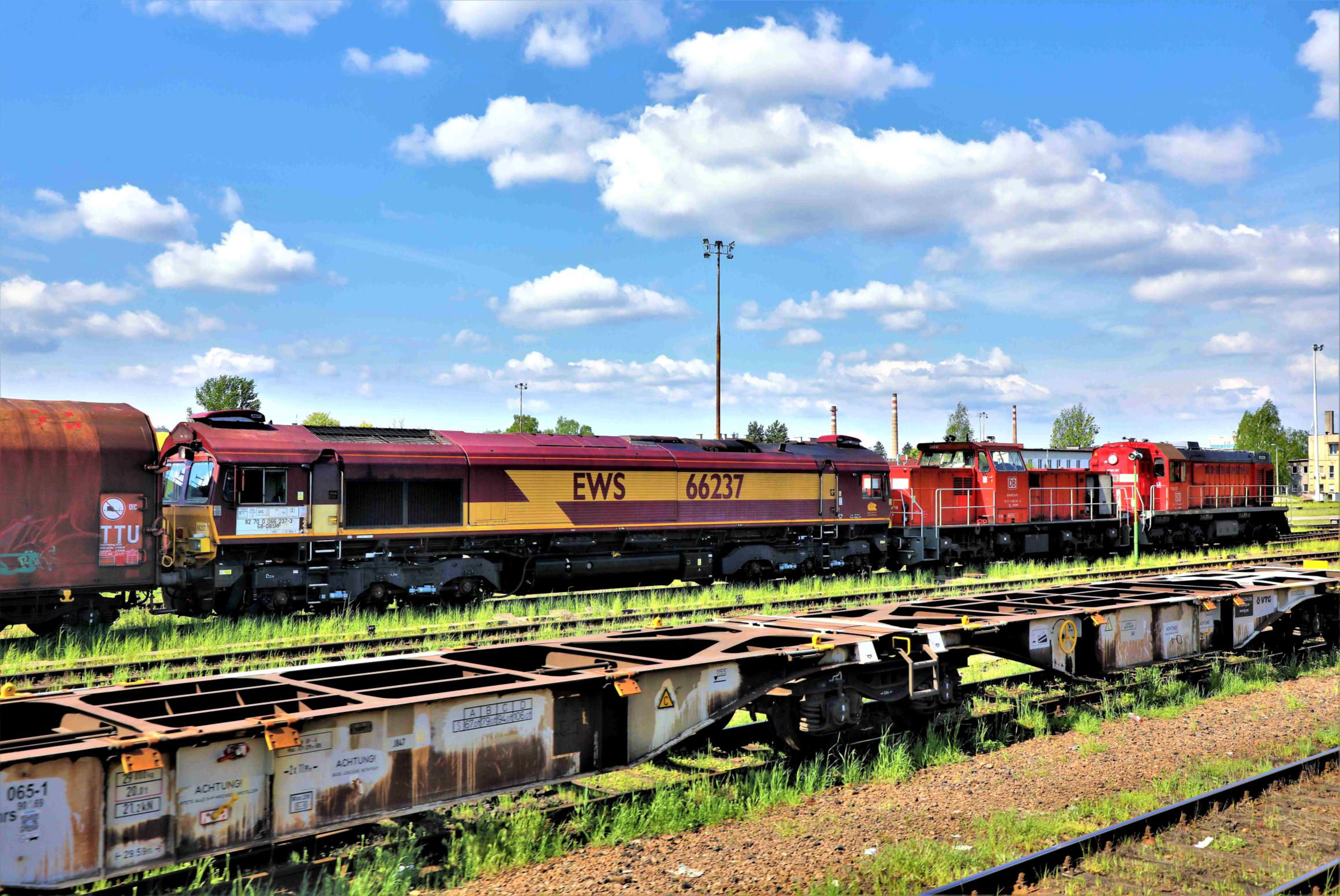DB TEM-2307 (Soviet -built) + DE6400-6410 + 66237 on a steel train in Jaworzno Szczakowa yard.`