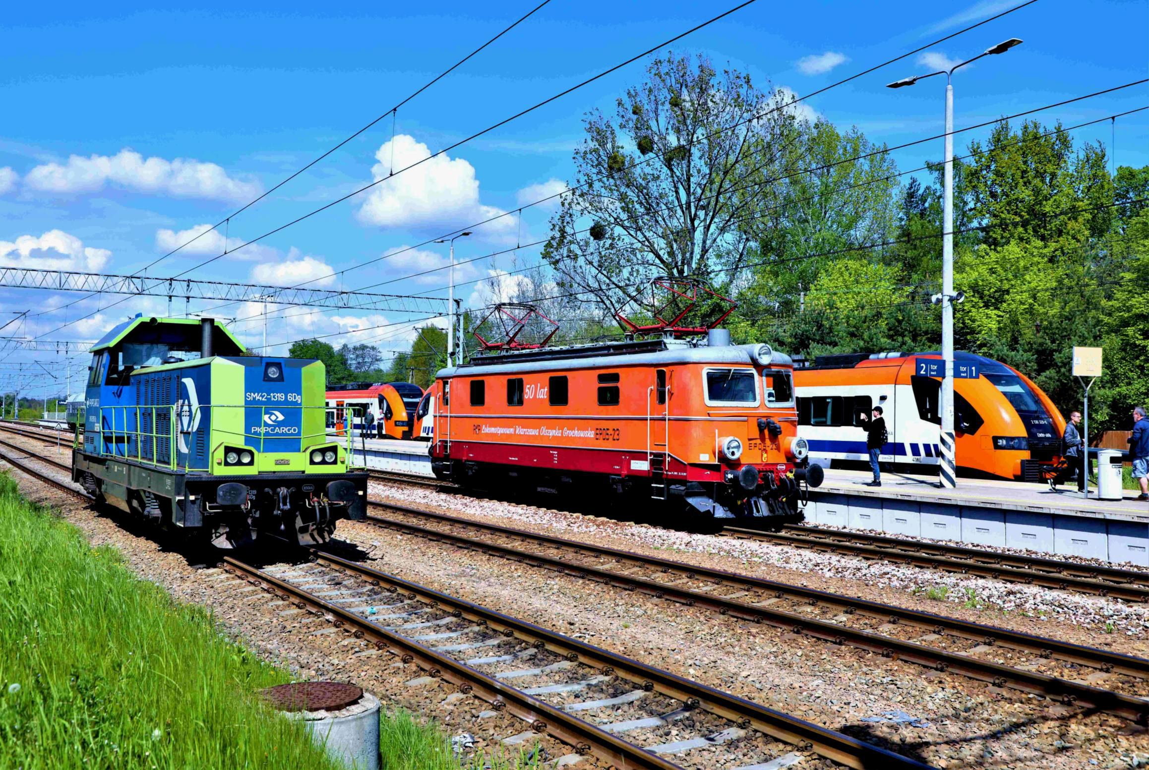 Libiąż station where the tour train, EP05-23, is running round.