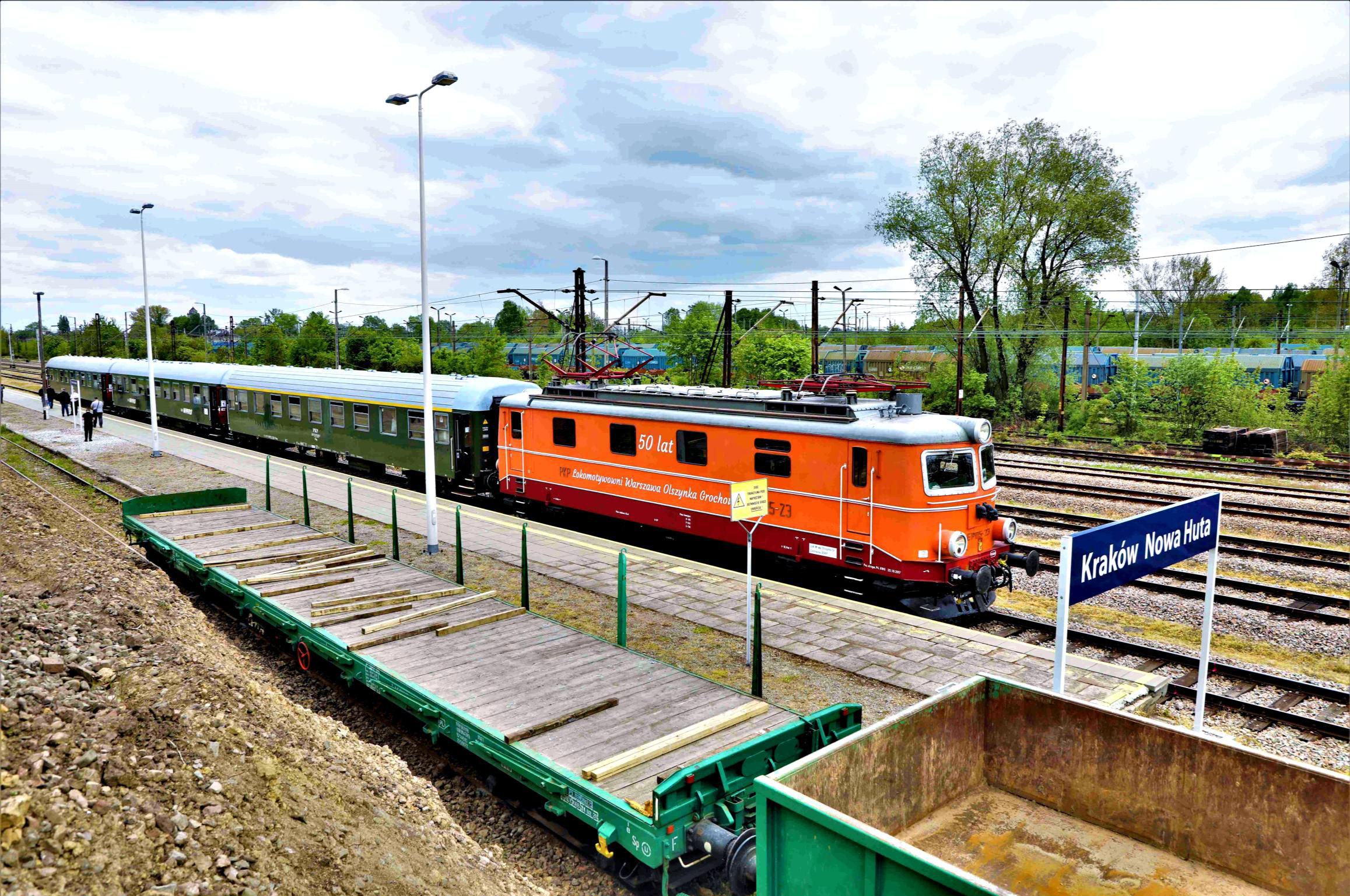 Continuing, we next veered left on the EGTRE* entry Curve 602 back to Kraków Płaszów via Kraków Olsza, again for a very leisurely reversal. The original planned reversal was at Kraków Łęg, which had been refused due to the aforementioned security concerns. The original plan was to return to Kraków Nowa Huta via Line 95, completing the triangle, and round the lengthy loop allowing freights from the west and north to arrive into the appropriate yard from the east (a main booking feature for seasoned Polish travellers). However, it had not gone unnoticed on the earlier pass that both sets of points giving access to and from the ring were not connected and the OHLE wiring into the yard off the loop was missing. So, we simply returned to Kraków Nowa Huta platforms and ran round again