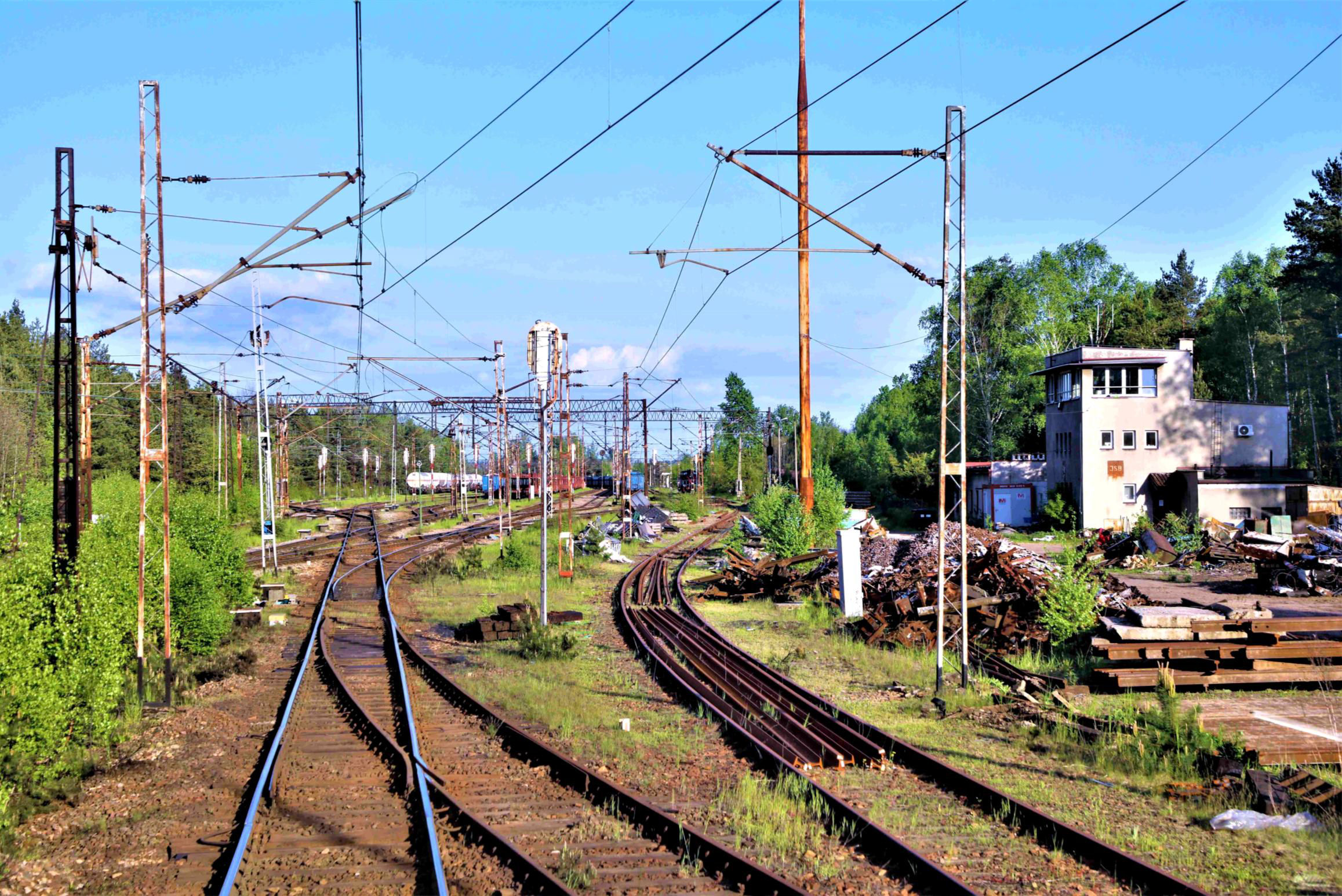 The west end of Jaworzno Szczakowa Yard with 'JSB' signal box on the right.