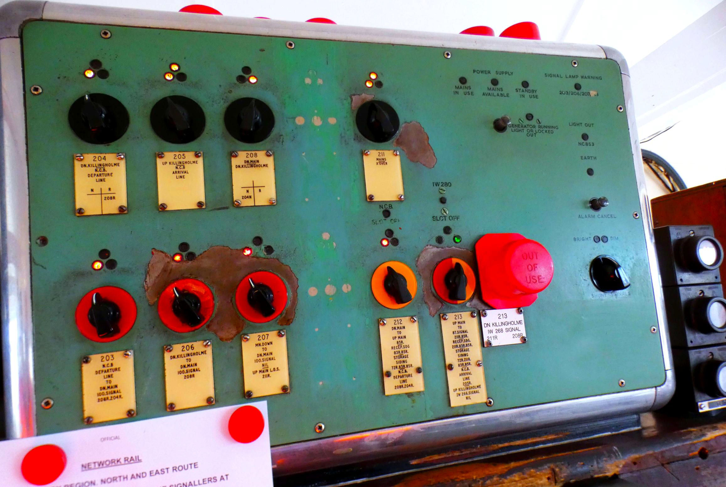 Finally, an eNtrance eXit (NX) panel controls access to Lindsey and Humber Oil Refineries just west of Humber Road Jn. It dates from 18 Sep 1977, inserted into the console shell of an earlier (26 Oct 1967) Westinghouse NX panel provided for the commissioning of the lines associated with the oil refineries.