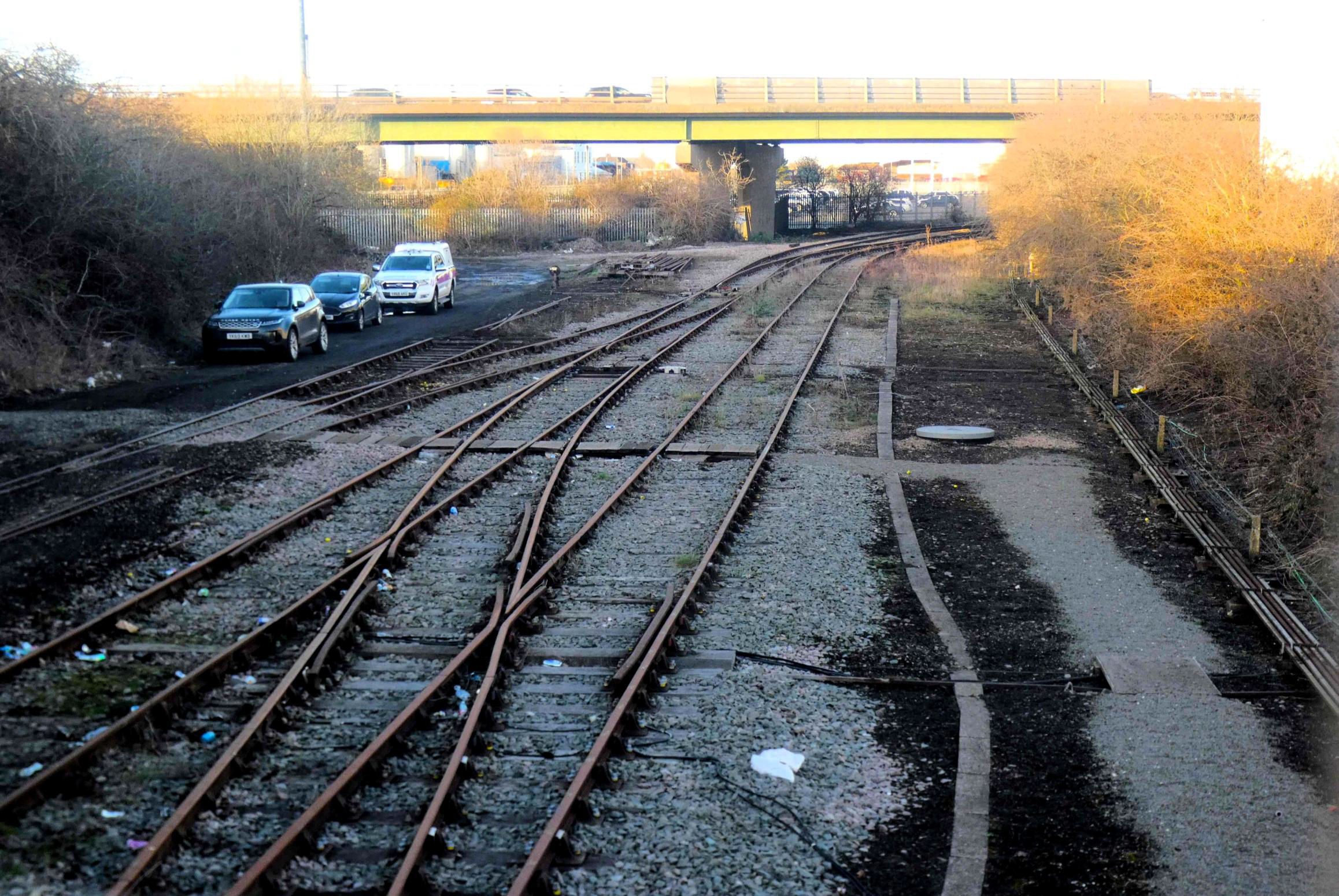 View southeast from the 'back' (coast side) of the box to Immingham Reception Sidings ahead, the scrap metal top left is at the old NCB Terminal.
