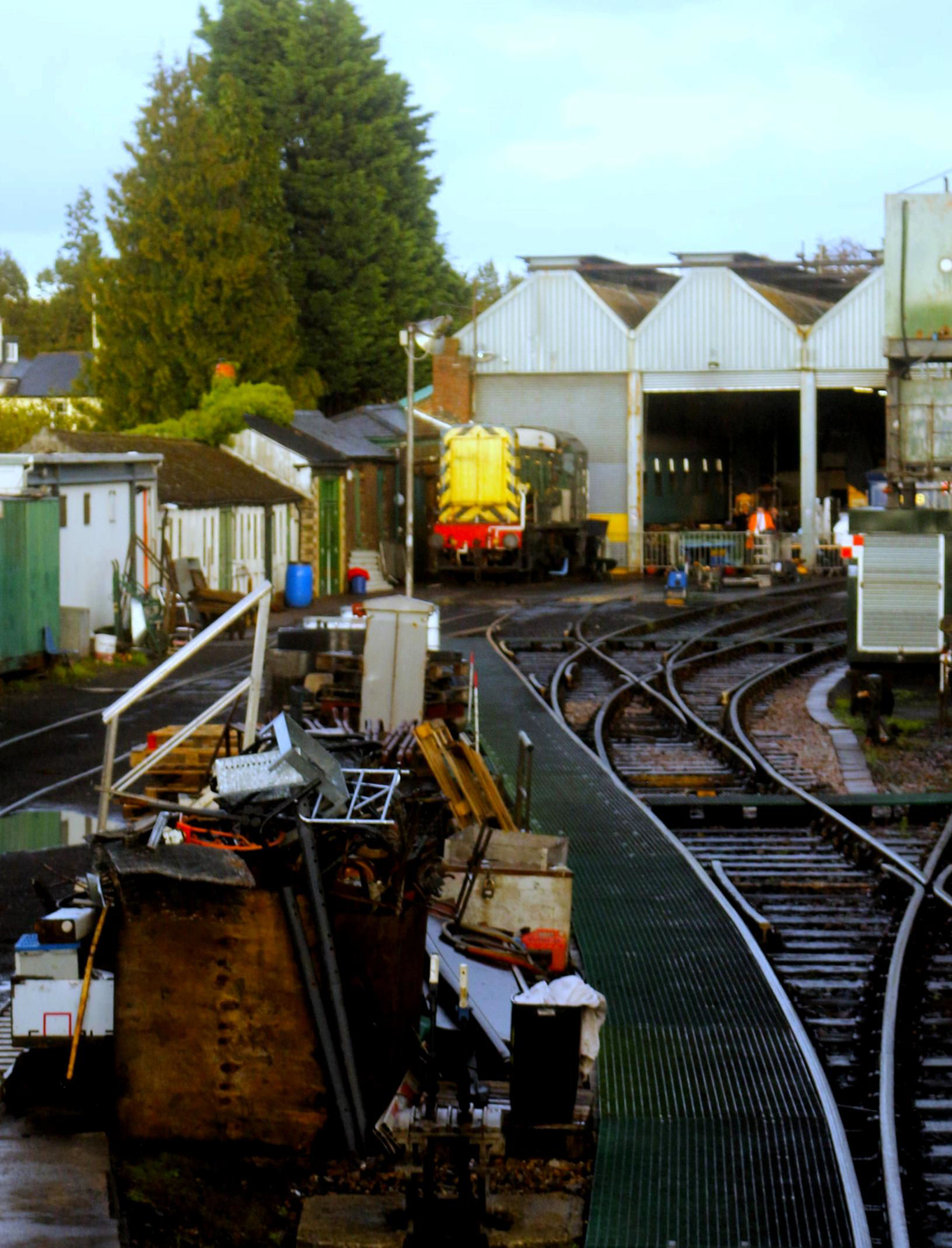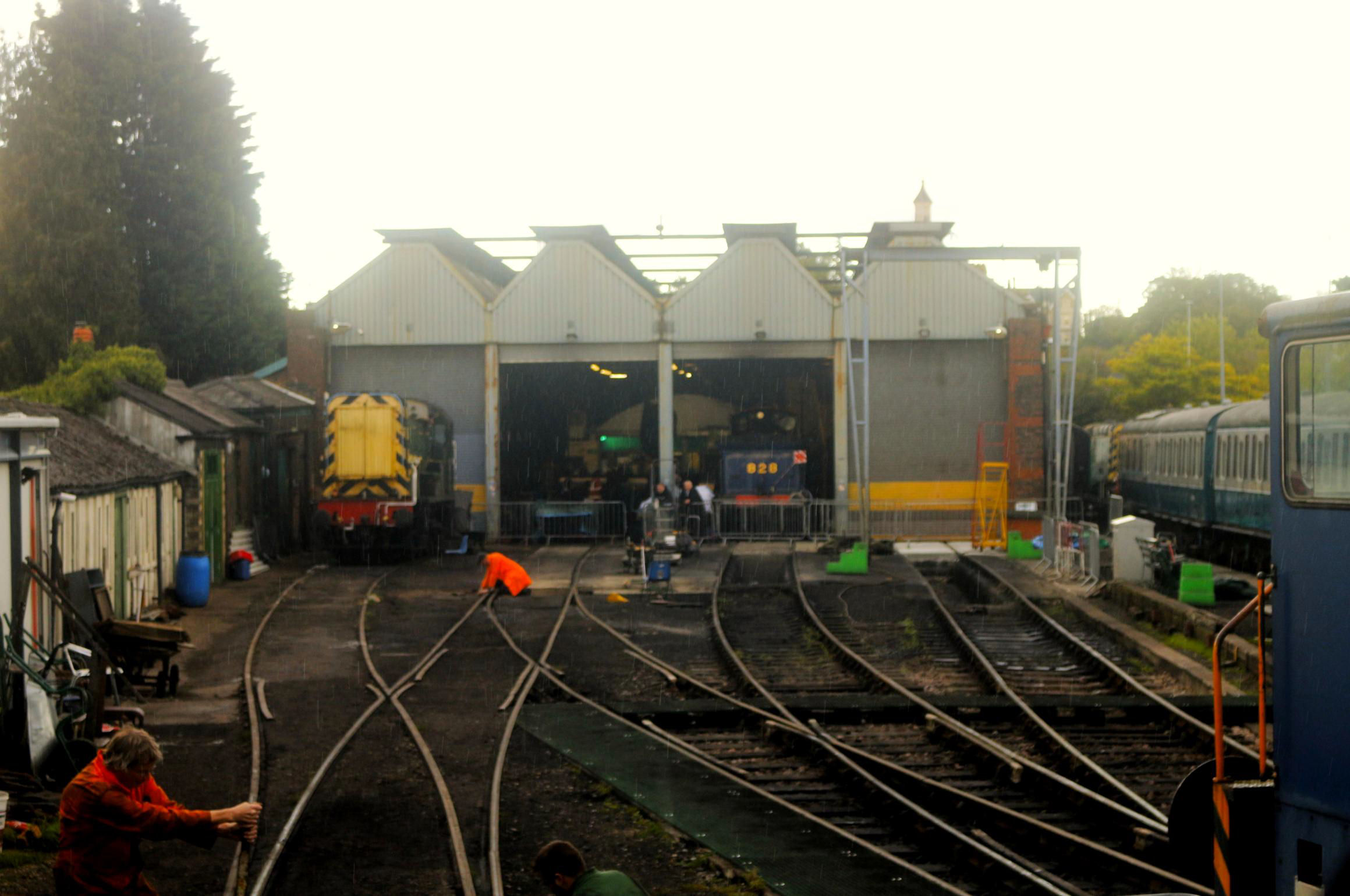 An intensive series of shunts followed, including P2 road (not usually used), the loco release crossover to P1, Shed Roads 1-4 inclusive to the shed doors (except Road 1 where 09026 was stabled), the 'Coal Road' and East/West Siding No1 which was part of the Up line in double track days - to its operational extremity (just before the A26 - appropriately Eridge Road - underbridge). By now the weather had turned somewhat inclement but, to their credit, this did not deter the Spa Valley Railway ground crew.