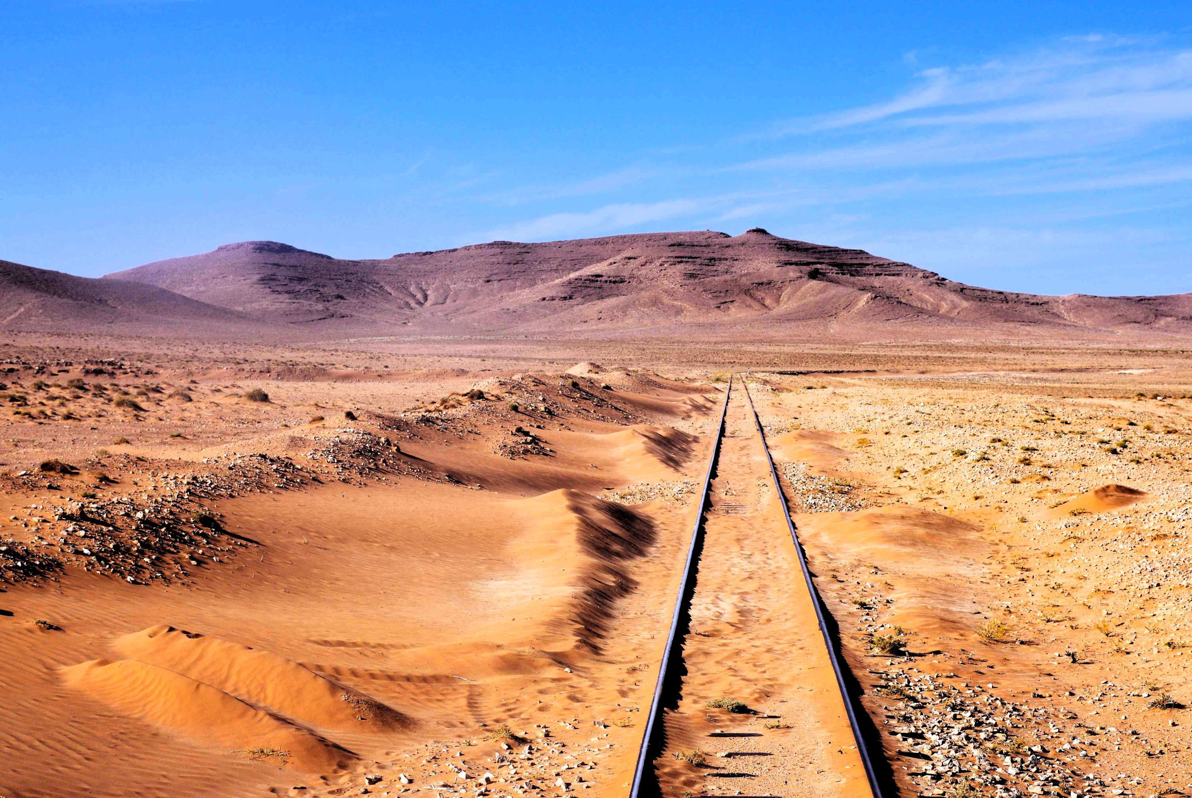We now entered the area where sand is often blown over the tracks in shallow cuttings, (Fairbourne Railway style - see BLN 1184 p177 of 11 May 2013) but an ONCF gang had been clearing the sand from known problem locations ahead of us and we had no problems for a while. The next major point of interest is where the track bed of the Trans-Sahara railway diverges to the left. WWII effectively ended the construction of this line, which was subsequently abandoned. Imagine if you could have boarded a train at Oujda for Timbuktu. It could have happened - the most difficult part of the line had been built.