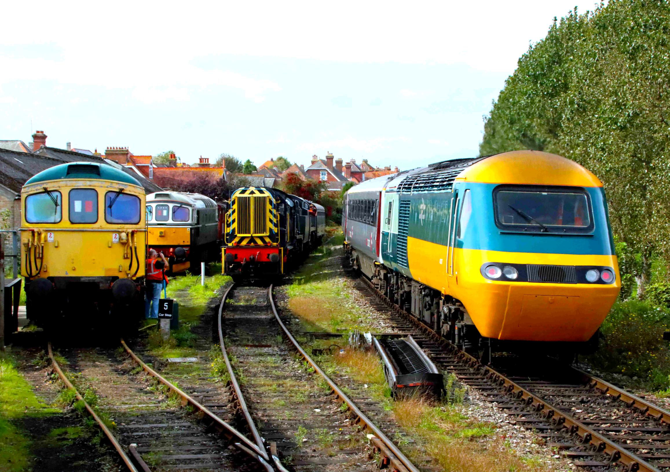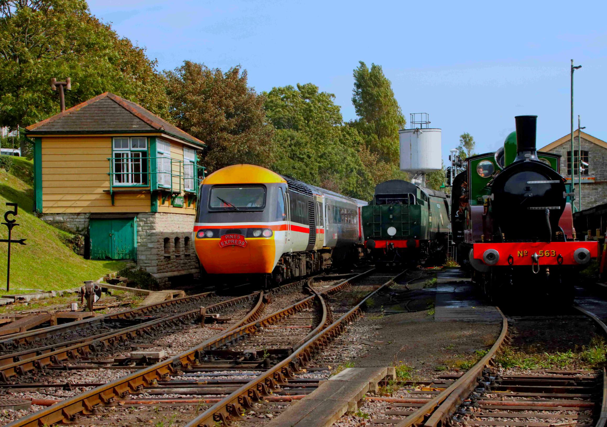 Thus, Swanage station was extremely busy; it was clear that the tours had attracted a lot of interest from both enthusiasts and the public. Additional interest was provided by the presence of the newly restored London & South Western Railway T3, in light steam just north of the station. The return of 'Manston' (with some participants) to Swanage left the line clear for the HST to depart at 16.18, for a scheduled return journey time of seven and a half hours. The longer journey was largely due to the train returning to Reading by a slightly more circuitous route, via the Laverstock Loop at Salisbury and Andover. This is a diversionary route used by CrossCountry between Southampton and Basingstoke.