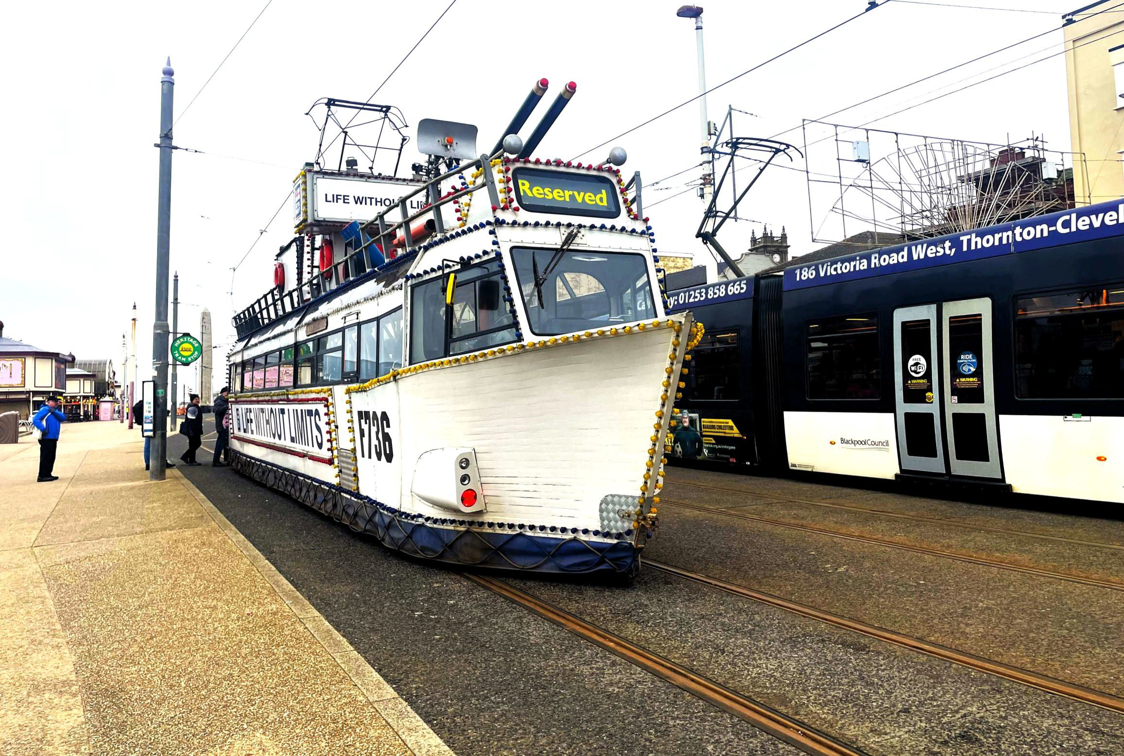 Our 'Hello Sailor!' tram tour boarding at Blackpool North Pier Loop.