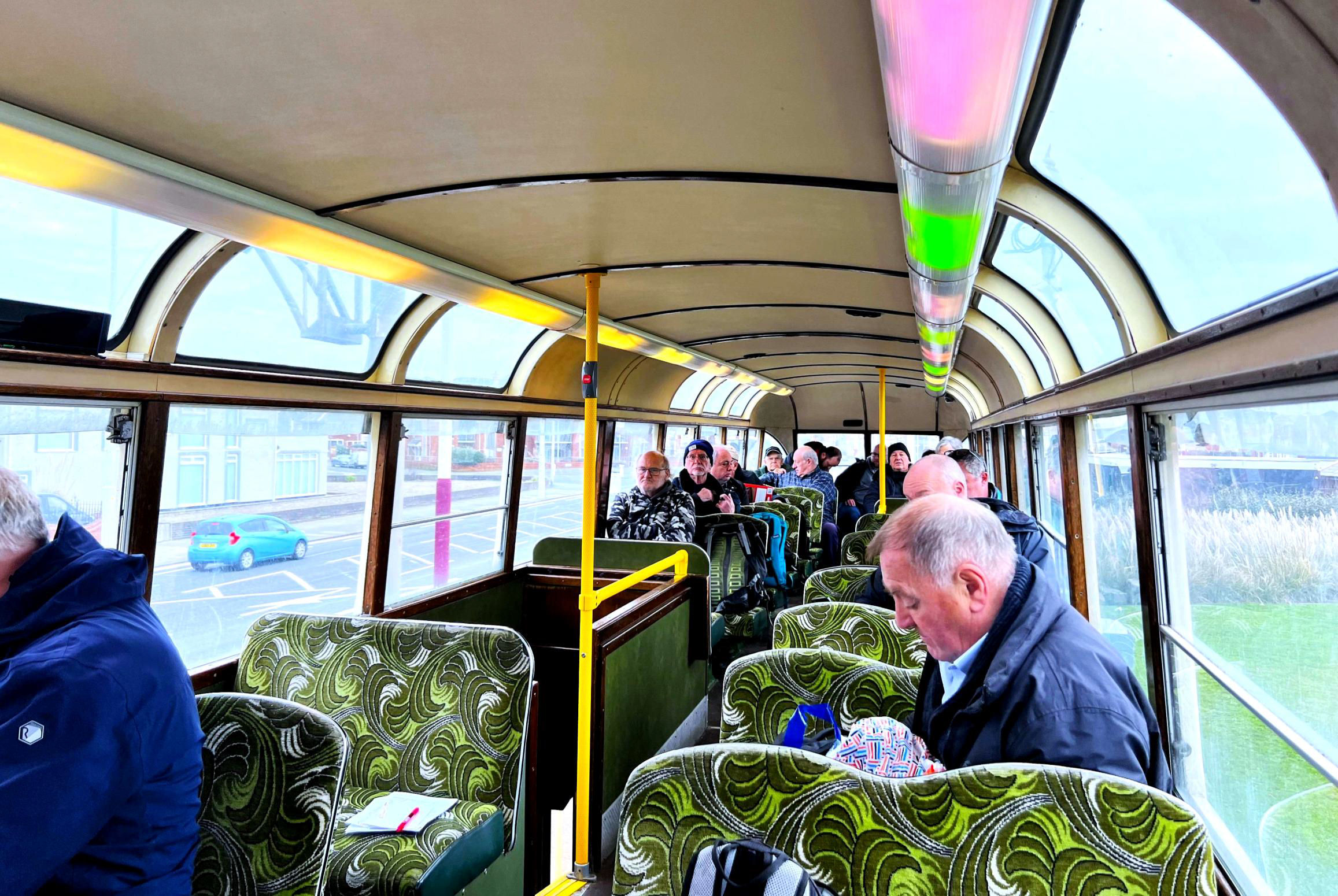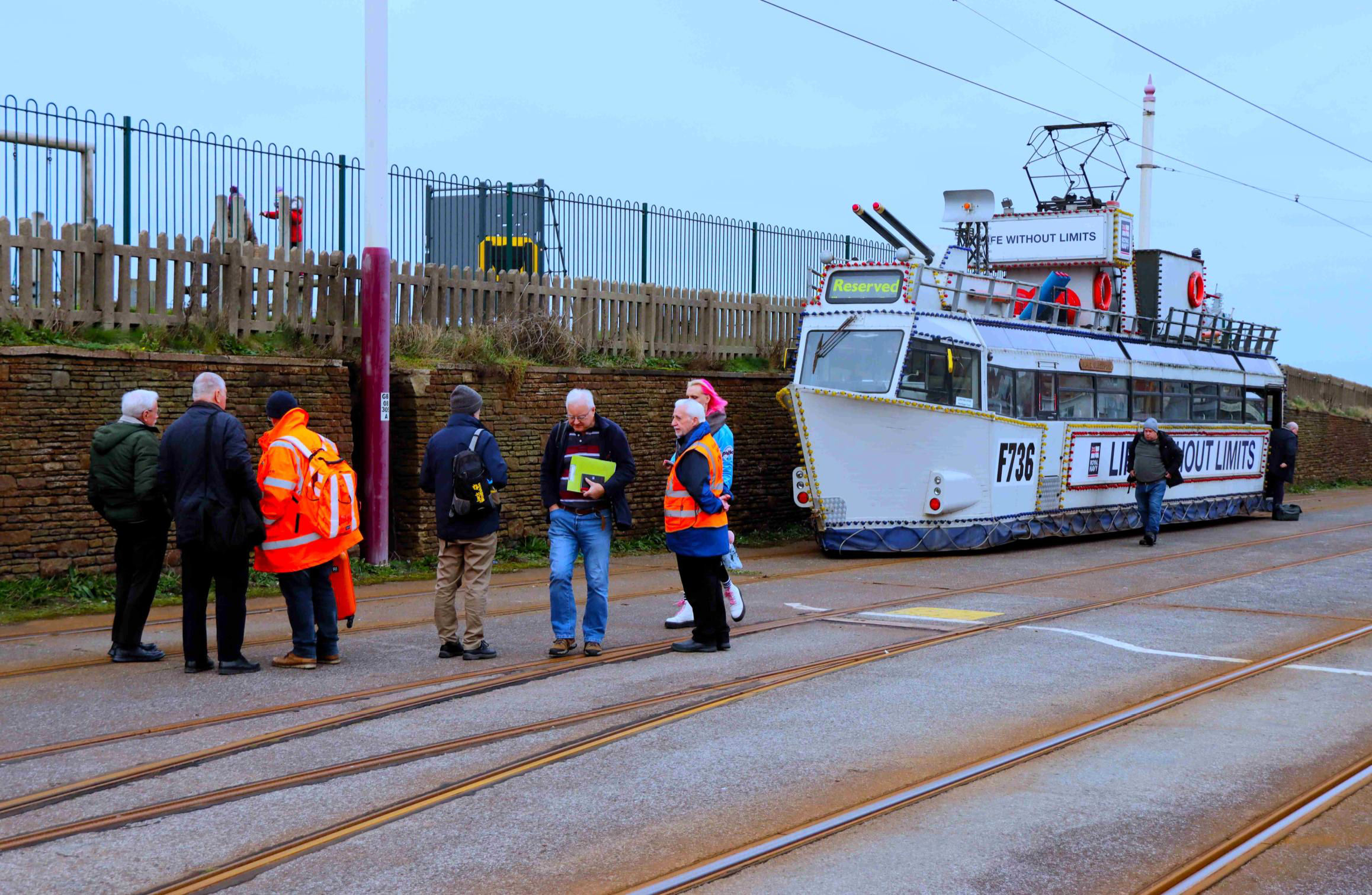A glance at the title of this report suggests, correctly, that not all went according to plan. The original tour name was presumably based on us using the curious single deck Tram 736, mocked up as Royal Navy frigate 'HMS Blackpool' - originally built in the mid 1960s and rebuilt about 20 years ago. If you have never seen it, find a picture online (and in e-BLN) as it really does look gloriously odd and certainly turns heads. Indeed, said frigate/warship arrived at a chilly but dry North Pier just before 10am and, with just under 50 members squeezed on board, duly set off north towards Bispham.