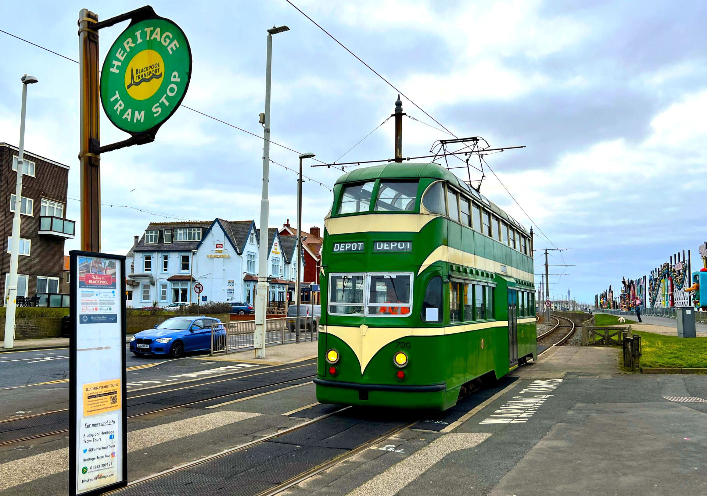 'Balloon' 700 approaches Bispham (but didn't stop at its Heritage stop!) from Starr Gate Depot to, very successfully, continue our tour.
