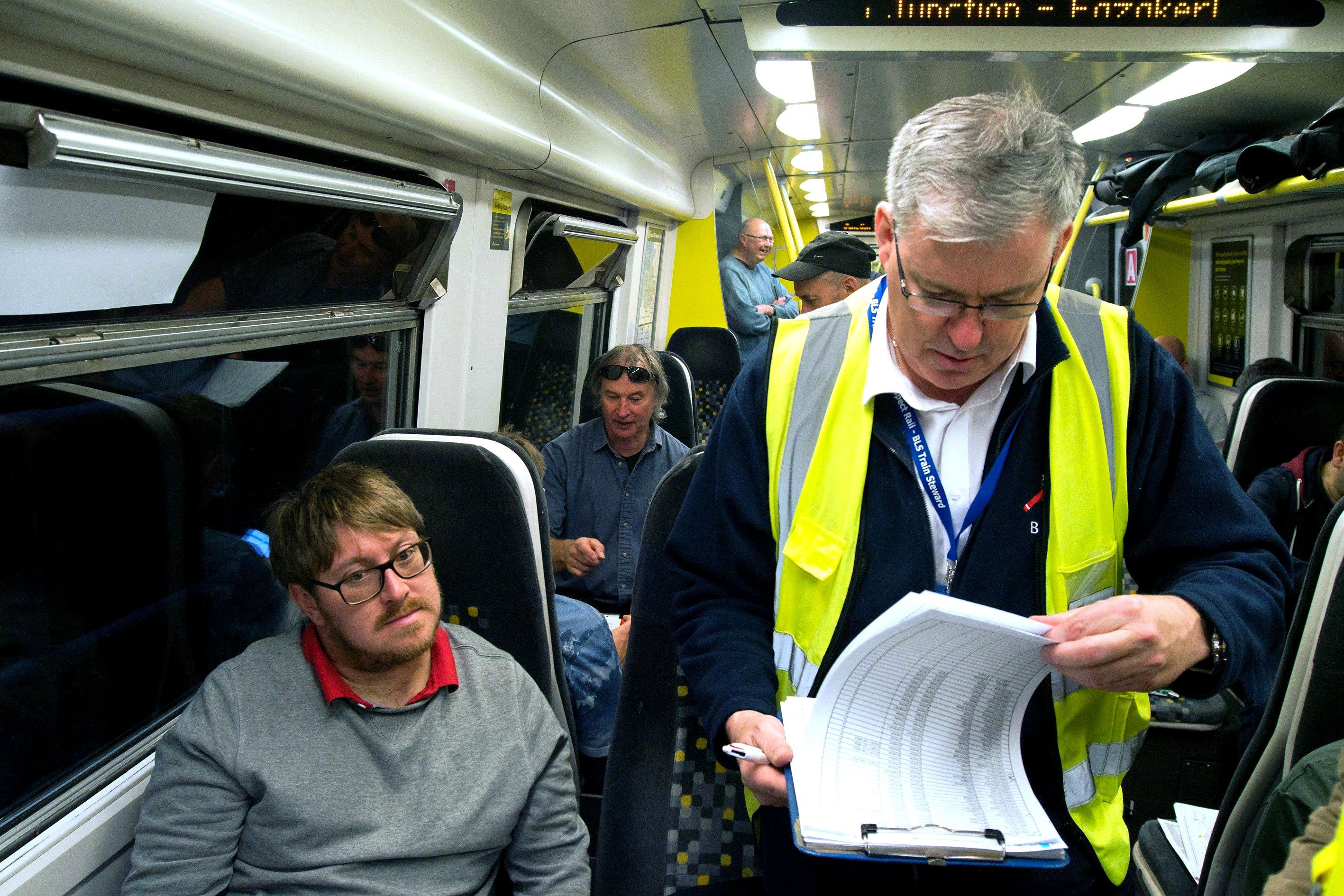 Well, I have paid, honest, Gov... Bernie Lovelock (ably assisted by Archie Lewis) carrying out a full ticket check.