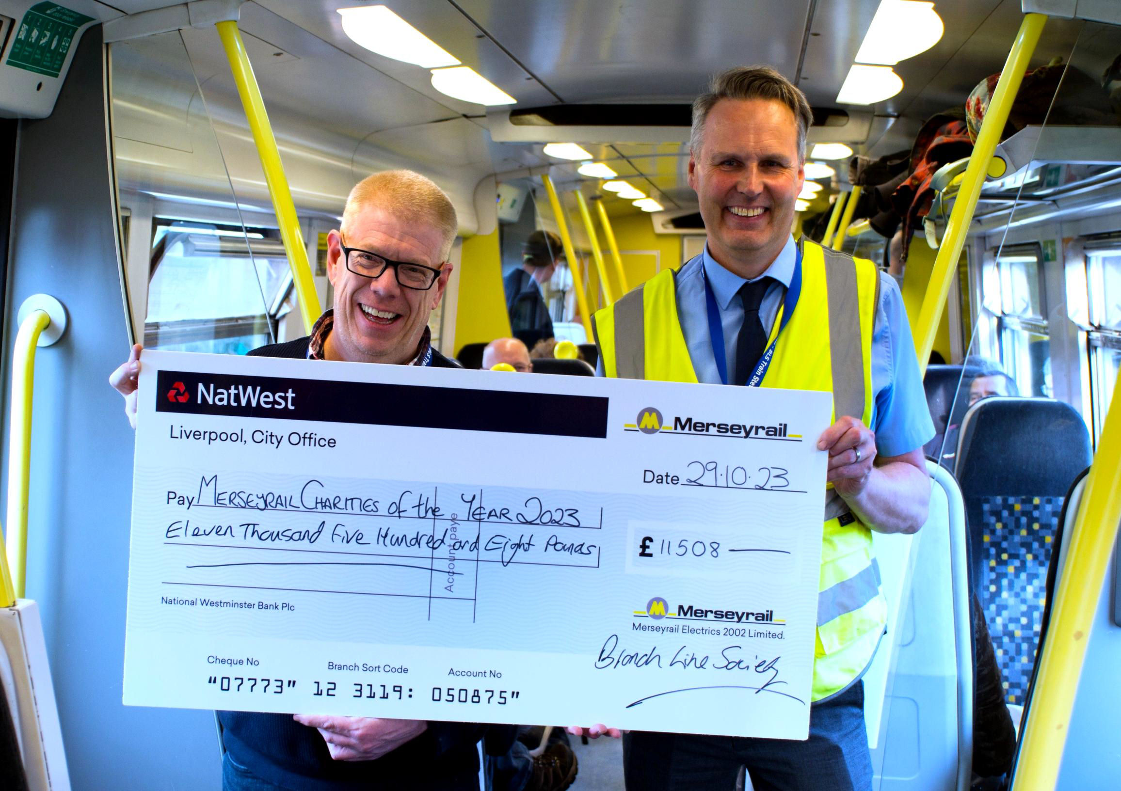 £12,700 (£500 from the walking tour) was donated to Merseyrail's good causes: ●KIND - helping children and families in Liverpool and Merseyside cope with the effects of poverty and disadvantage. ●SWACA - supporting Sefton's women, young people and children. ●Paper Cup Project - a Liverpool charity supporting local rough sleepers and homeless people.●Tam O'Shanter Cottage & Community Farm - aiming to provide an enjoyable and educational experience for kids and adults in Birkenhead