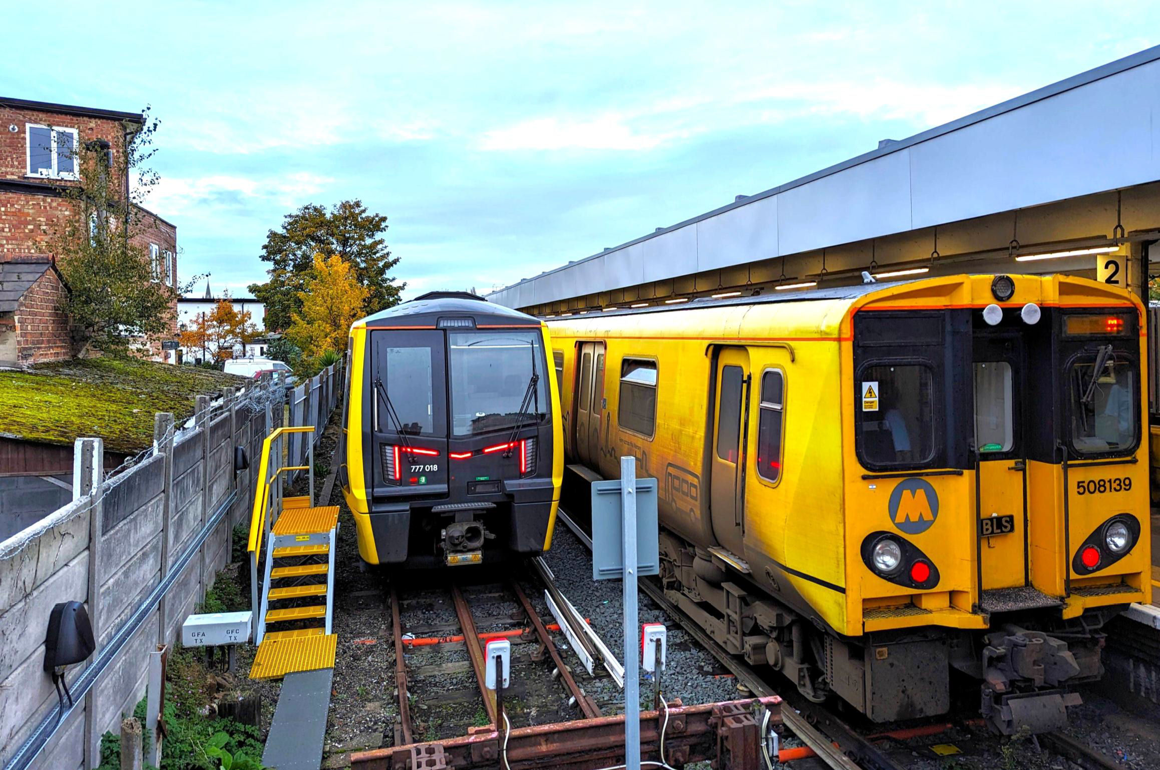 Our tour in West Kirby P2 from the end of line, note the new 'hop up' steps provided for the Class 777s left of 777018.