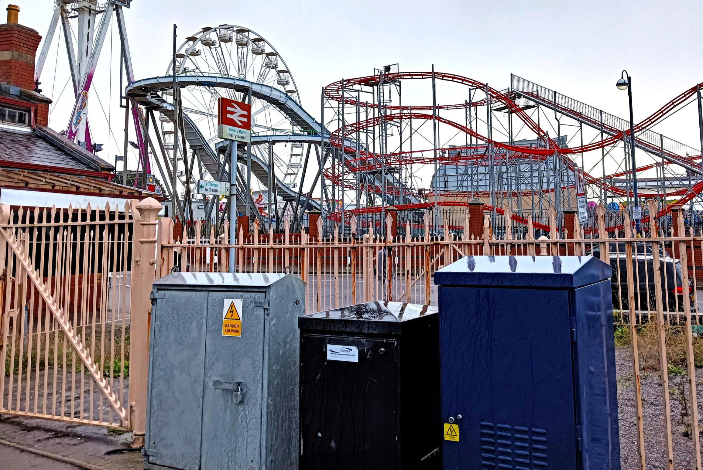 Some nice original GWR spear-top fencing at Barry Island (end of line is off left); note the very steeply graded narrow gauge line ahead.