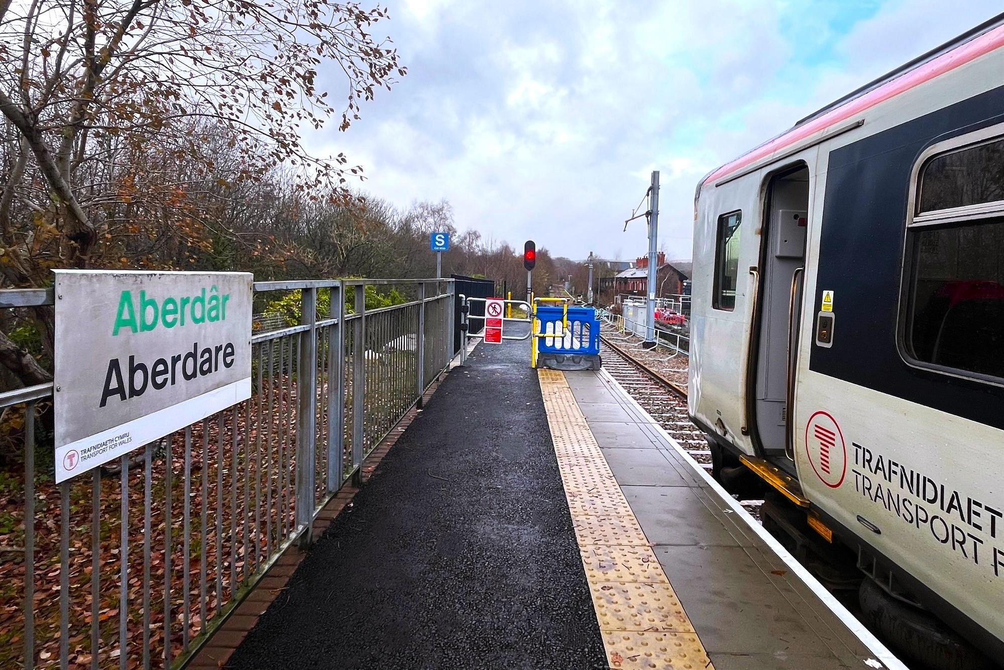 The Aberdare branch now has double track at Mountain Ash and a loop at Abercwmboi, little used since coal trains finished. There is also a new dynamic loop from Cwmbach to Aberdare. Eventually, a 15 minute frequency means the new Aberdare P2 will be the terminating/set down platform with the existing P1 for departures; the up line of the redoubled section between them will then be ECS only.