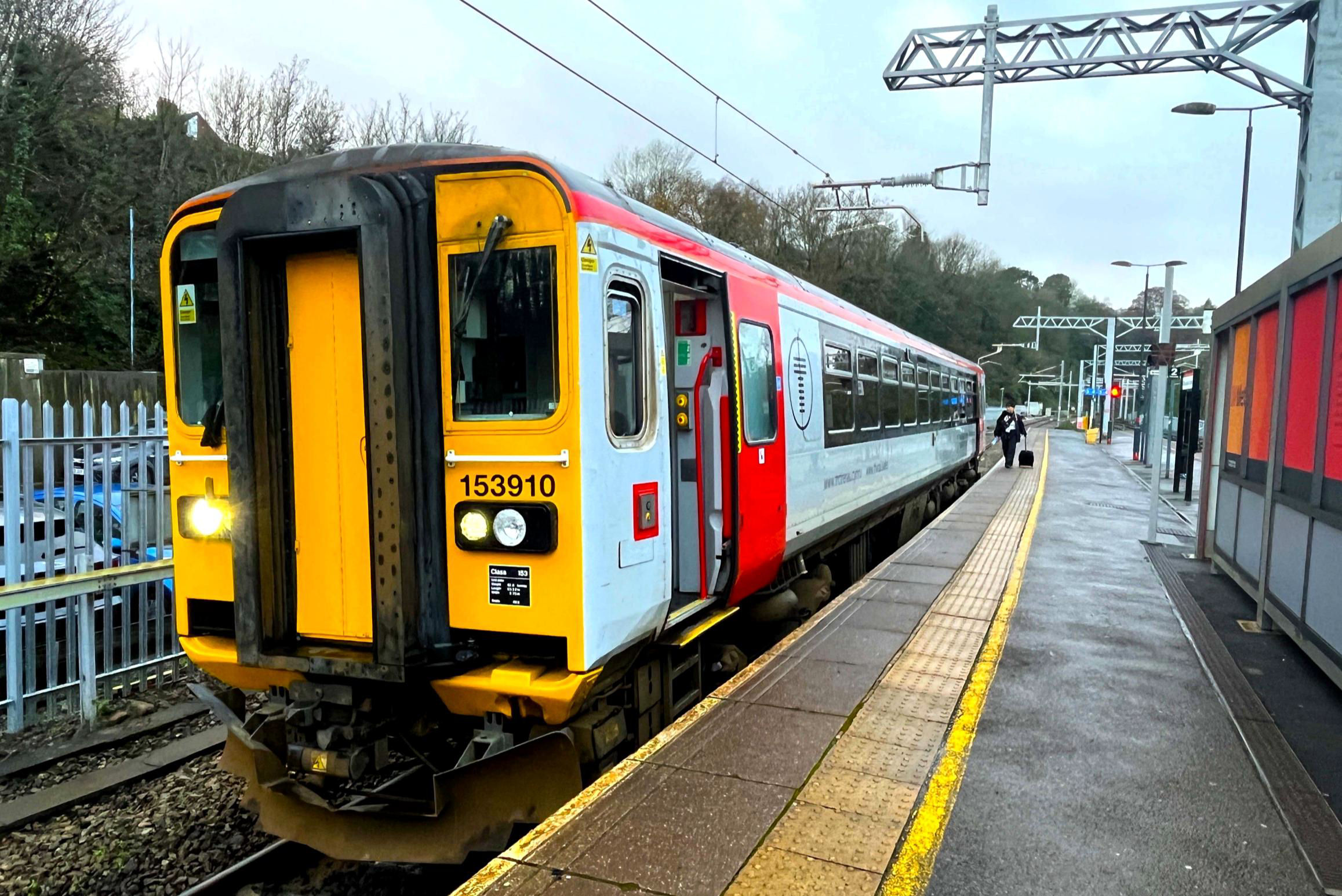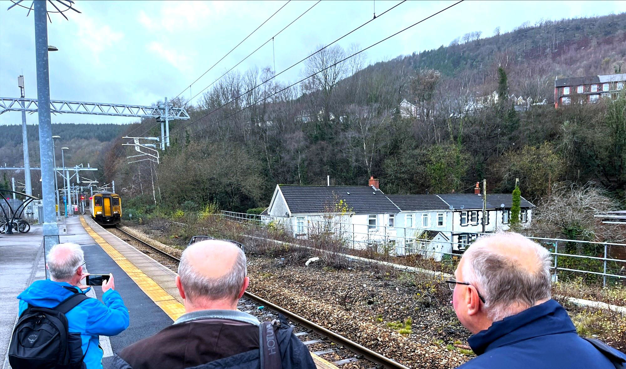 We returned down the valley to Abercynon for 150281 to take us to Merthyr; the new Quakers Yard loop was in use although delays in obtaining planning permission work meant the station was served by bus from Abercynon. It reopened Mon 18 Dec. At Merthyr Vale and north of Pentre Bach, sections have been redoubled. Returning south, changing at Radyr to P3 rejoining our tour manager.